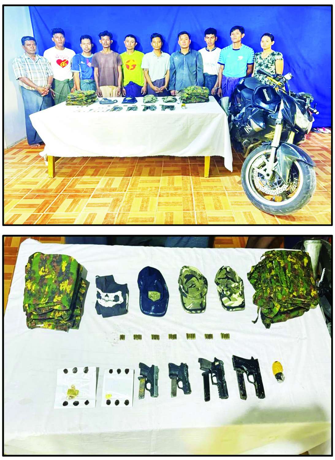 ဖော်ထုတ်ဖမ်းဆီးရမိသည့် ဓားပြတိုက်ခြင်း၊ လုယက်မှုများကိုကျူးလွန်ရာတွင် လုံခြုံရေးတပ်ဖွဲ့ဝင်များအဖြစ် အယောင်ဆောင်ကျူးလွန်ခဲ့ကြကြောင်း အထောက်အထားများနှင့်တကွ စစ်ဆေးပေါ်ပေါက်ပြီး ဖမ်းဆီးရမိသည့် နေထက်လင်းအပါအဝင် အမျိုးသား ၁၅ ဦး၊ အမျိုးသမီးနှစ်ဦးတို့အား ဥပဒေနှင့်အညီ ထိရောက်စွာအရေးယူနိုင်ရေး ဆက်လက်ဆောင်ရွက်လျက်ရှိ ကြောင်း၊ ပြစ်မှုကျူးလွန်ရာတွင် ပူးပေါင်းပါဝင်ခဲ့ပြီး ဖမ်းဆီးရန်ကျန်တရားခံများနှင့် သိမ်းဆည်းရန်ကျန် လက်နက်ခဲယမ်းများကို အမြန်ဆုံးဖော်ထုတ်ဖမ်းဆီးရမိနိုင်ရေး၊ ဖြစ်စဉ်များတွင်ပါဆုံးခဲ့သည့် သက်သေခံပစ္စည်းများကို ပြန်လည်သိမ်းဆည်းနိုင်ရေး ဆက်လက်ဆောင်ရွက်လျက်ရှိကြောင်း မြန်မာနိုင်ငံရဲတပ်ဖွဲ့မှ သတင်းထုတ်ပြန်ထားသည်။