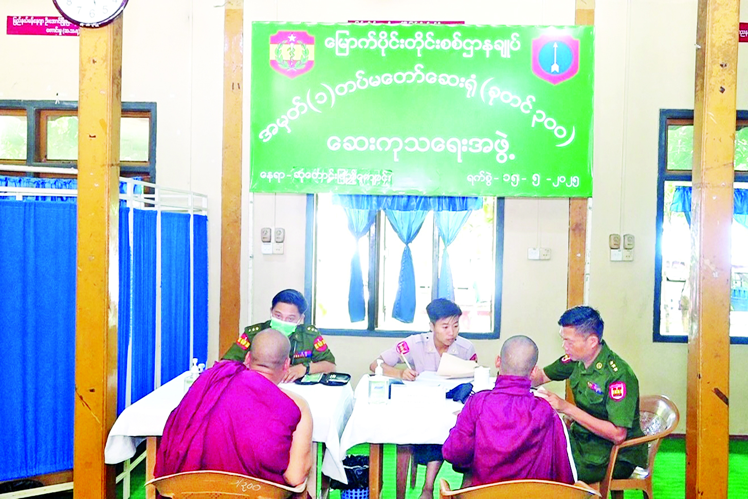 ထိုသို့ဆောင်ရွက်ပေးရာတွင် ဆေးကုသရေး အဖွဲ့က သံဃာတော် ၃၇ ပါးတို့အား ခွဲစိတ်ကုသမှုဆိုင်ရာ ရောဂါ၊ အရိုးအကြောရောဂါ၊ အာရုံကြော အားနည်းရောဂါ၊ အထွေထွေရောဂါတို့နှင့်ပတ်သက်၍ လိုအပ်သည့် ကျန်းမာရေးစစ်ဆေးကုသပေးခြင်း၊ ECG စက်ဖြင့် နှလုံးစမ်းသပ်စစ်ဆေးပေးခြင်း၊ ဓာတ်မှန်ရိုက်၍ ရောဂါရှာဖွေပေးခြင်းများ ဆောင်ရွက်ပေးပြီး ဆေးရုံတက်ရောက်ကုသရန်လိုအပ်သည့် သံဃာတော်များအား နယ်မြေခံတပ်မတော်ဆေးရုံသို့ တက်ရောက်ကုသနိုင်ရေး စီစဉ်ဆောင်ရွက်ပေးသည်။