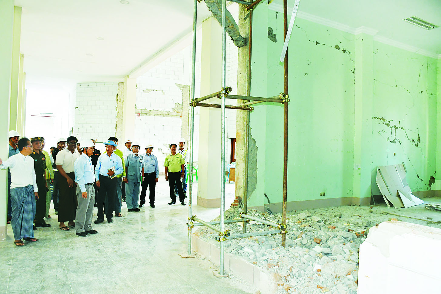 ထို့နောက် နေပြည်တော်ကောင်စီဥက္ကဋ္ဌသည် နေပြည်တော်ကောင်စီဝင်များနှင့်အတူ ငလျင်ဘေးဒဏ်ကြောင့် ထိခိုက်ပျက်စီးခဲ့သည့် နေပြည်တော်ကောင်စီရုံး ပြန်လည်ပြုပြင်နေမှုအခြေအနေများကို သွားရောက်စစ်ဆေးပြီး အဆောက်အအုံများပြုပြင်ရာတွင် ဆောက်လုပ်ရေးဝန်ကြီးဌာနမှ ထုတ်ပြန်ထား သော SOP နှင့်အညီ ဆောင်ရွက်ရေး၊ စံချိန်စံညွှန်းနှင့်အညီ ရေရှည်တည်တံ့ခိုင်မြဲအောင် ဆောင်ရွက်ရေးအပိုင်းလိုက် အမြန်ပြီးစီးအောင် ပြုပြင်ဆောင်ရွက်ရေးတို့ကိုမှာကြားခဲ့ကြောင်း သိရသည်။