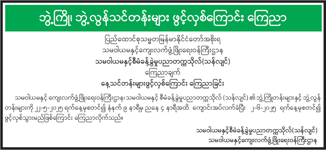 ဝန်ကြီးဌာန ကြေညာချက်များ