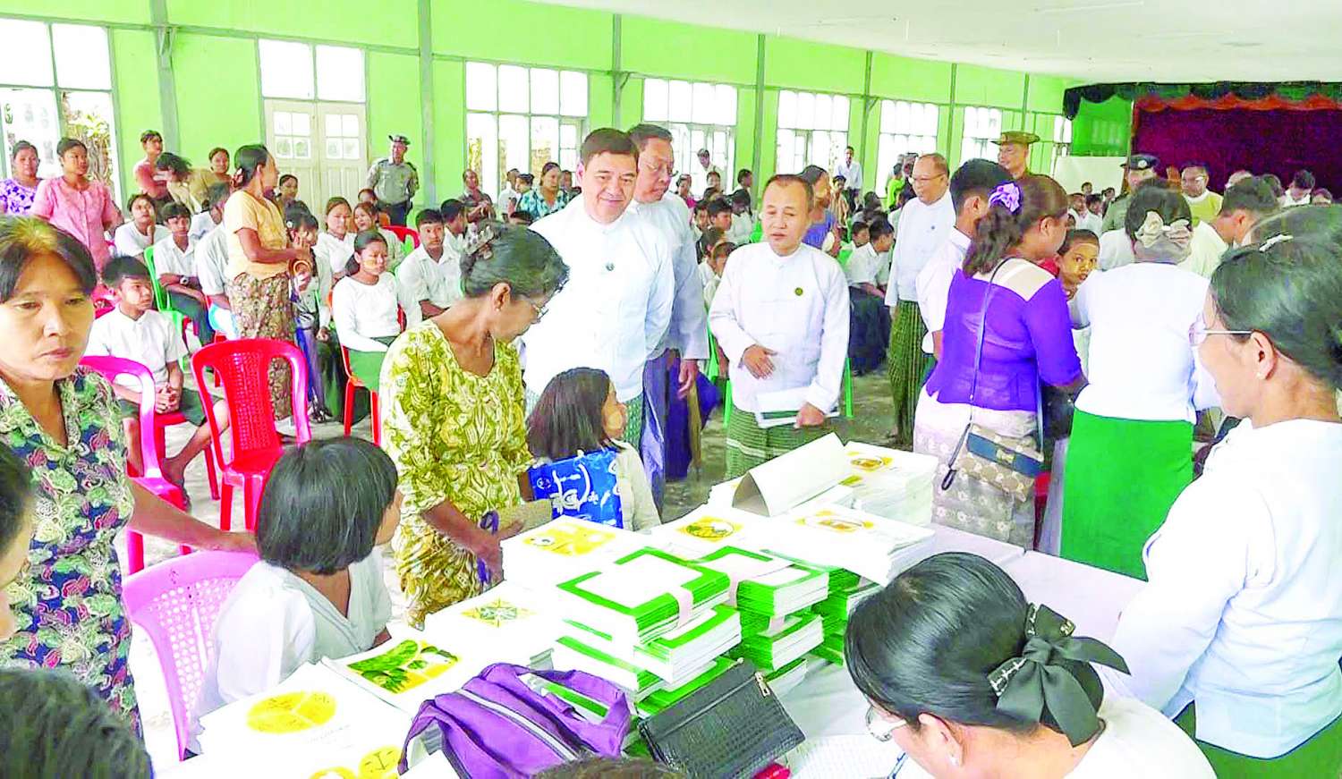 ယင်းသို့ ဆောင်ရွက်ရာတွင် တိုင်းဒေသကြီးနှင့်ပြည်နယ်အသီးသီးရှိ အခြေခံပညာကျောင်းများ အလိုက် ကျောင်းအုပ်ကြီးများ၊ ကျောင်းအုပ်ချုပ်မှုတာဝန်ခံများနှင့် ဆရာ ဆရာမများက ကျောင်းလာရောက်အပ်နှံသူ မိဘအုပ်ထိန်းသူများနှင့်ကျောင်းသား ကျောင်းသူများ အဆင်ပြေချောမွေ့စွာ ကျောင်းအပ်နှံနိုင်ရေး ဆောင်ရွက်ပေးကြပြီး ကျောင်းသား ကျောင်းသူများအတွက် ပညာရေးဝန်ကြီးဌာနမှ အခမဲ့ပေးအပ်သည့် ကျောင်းသုံးစာအုပ်များ၊ စာရေးကိရိယာများနှင့် ကျောင်းဝတ်စုံများကို ကျောင်းသား ကျောင်းသူများအား တစ်ပါတည်း ပေးအပ်ကြသည်။