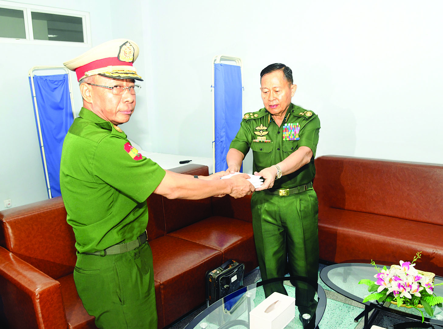 ထို့နောက် နိုင်ငံတော်စီမံအုပ်ချုပ်ရေးကောင်စီဒုတိယဥက္ကဋ္ဌ ဒုတိယတပ်မတော်ကာကွယ်ရေးဦးစီးချုပ် ကာကွယ်ရေးဦးစီးချုပ်(ကြည်း)နှင့် အဖွဲ့ဝင်များသည် ဆေးရုံများတွင် တက်ရောက်ဆေးကုသမှုခံယူလျက်ရှိသည့် အရာရှိ၊ စစ်သည်၊ မိသားစုများအား တစ်ဦးချင်း လိုက်လံကြည့်ရှု၍ ရောဂါဖြစ်ပွားမှုအခြေအနေများ၊ ဆေးဝါးကုသပေးထားမှုအခြေအနေများ၊ ကျန်းမာရေးတိုးတက်ကောင်းမွန်လာမှုအခြေအနေများနှင့်ပတ်သက်၍ တစ်ဦးချင်း ရင်းရင်းနှီးနှီး လိုက်လံမေးမြန်းအားပေးစကားပြောကြားပြီး စားသောက်ဖွယ်ရာများနှင့် ဂုဏ်ပြုချီးမြှင့်ငွေများ ပေးအပ်သည်။
