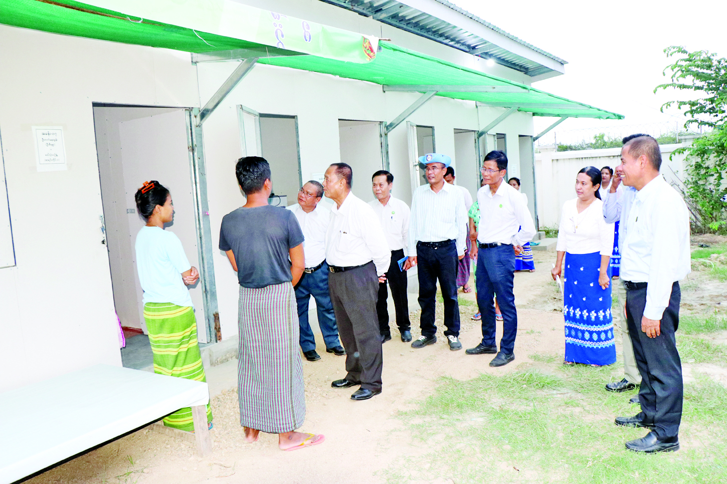 ဆက်လက်၍ ဒဏ္ခိဏသီရိမြို့နယ်ရှိ ပြည်ထောင်စုနယ်မြေ နေပြည်တော် အသေးစားစက်မှုလက်မှုလုပ်ငန်းဦးစီးဌာနရုံးဝင်းအတွင်း အသေးစားစက်မှုလက်မှု လုပ်ငန်းဦးစီးဌာနမှ ငလျင်ဒဏ်သင့် ဝန်ထမ်းများနေထိုင်နိုင်ရေး တည်ဆောက်ပြီးစီးခဲ့သည့် ယာယီဘာရှာလိုင်းခန်းများတွင် ဝန်ထမ်းများ ပြောင်းရွှေ့နေထိုင်နေမှုကိုလည်းကောင်း၊ လယ်ဝေးမြို့နယ် ကျေးလက်လမ်းဖွံ့ဖြိုးရေးဦးစီးဌာနရုံးမြေနေရာတွင် ကျေးလက်လမ်းဖွံ့ဖြိုးရေးဦးစီးဌာနမှ ငလျင်ဒဏ်သင့် ဝန်ထမ်းများနေထိုင်နိုင်ရေး ယာယီဘာရှာလိုင်းခန်းများ တည်ဆောက်နေမှုအခြေအနေများကိုလည်းကောင်း ကြည့်ရှုစစ်ဆေးပြီး ပြည်ထောင်စုဝန်ကြီးက မိုးမကျမီ အမြန်ဆုံးပြီးစီးအောင် ဆောင်ရွက်သွားရန်နှင့် ရေ၊ မီး၊ မိလ္လာစနစ်များ စနစ်တကျဆောင်ရွက်သွားရန် ဆွေးနွေးမှာကြားခဲ့ကြောင်း သိရသည်။