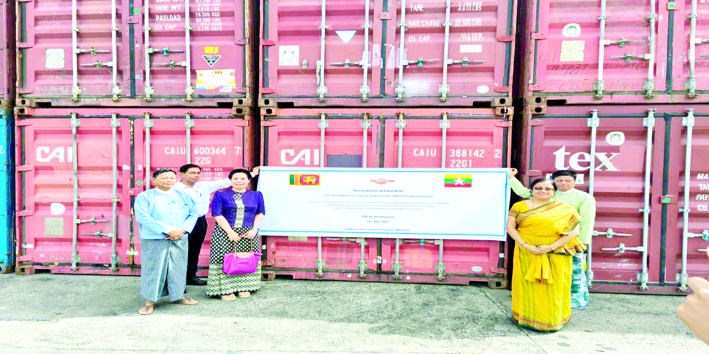 ယခုအခါ မေ ၂၀ ရက်မှ ၂၇ ရက်အထိ ရက်သတ္တတစ်ပတ်အတွင်း ထိုင်းနိုင်ငံရောက် စေတနာရှင်များ၊ သီရိလင်္ကာနိုင်ငံနှင့် တရုတ်နိုင်ငံ၊ ချုံချင့်မြူနီစီပယ်အစိုးရတို့က ထပ်မံပေးပို့လှူဒါန်းလာသော မိုးကာတဲ၊ မီးစက်၊ စားသောက်ကုန်၊ လူသုံးကုန်၊ အိမ်သုံးပစ္စည်း၊ လျှပ်စစ်ပစ္စည်း၊ ဆေးနှင့် ဆေးပစ္စည်းများအနက် ဆေးနှင့် ဆေးပစ္စည်းများကို ကျန်းမာရေးစောင့်ရှောက်မှုလုပ်ငန်းကော်မတီ (ကျန်းမာရေးဝန်ကြီးဌာန) သို့လည်းကောင်း၊ မီးစက်၊ စားသောက်ကုန်၊ လူသုံးကုန်၊ အိမ်သုံးပစ္စည်း၊ လျှပ်စစ်ပစ္စည်းများကို ဘေးသင့်လူဦးရေအချိုးအစားအပေါ် မူတည်၍ နေပြည်တော်၊ စစ်ကိုင်းတိုင်းဒေသကြီး၊ မန္တလေးတိုင်းဒေသကြီးနှင့် ရှမ်းပြည်နယ်တို့သို့ ဖြန့်ခွဲပေးပို့ပြီးဖြစ်သည်။