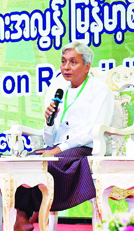 ယင်းနောက် “စီးပွားရေးပြန်လည်ထူထောင်ခြင်းအတွက် စိန်ခေါ်မှုများနှင့် အခွင့်အလမ်းများ” ခေါင်းစဉ်ဖြင့် ဆွေးနွေးရာတွင် သဘာပတိအဖြစ် မြန်မာ့ပုံရိပ်ဖော်ညွှန်းရေးအဖွဲ့မှ ဒါရိုက်တာ ဒေါက်တာနိုင်ဆွေဦးက ဆောင်ရွက်ပြီး စီးပွားရေးနှင့် ကူးသန်းရောင်းဝယ်ရေးဝန်ကြီးဌာန ဒုတိယဝန်ကြီး ဦးမင်းမင်း၊ မြန်မာနိုင်ငံလိုင်စင်ရ ကန်ထရိုက် တာများအသင်းချုပ်(MLCA) အထွေထွေ အတွင်းရေးမှူးချုပ် ဦးသက်ကိုကို၊ မြန်မာနိုင်ငံ အာမခံအသင်း ဒုတိယဥက္ကဋ္ဌ ဒေါ်မာလာညွန့်နှင့် မြန်မာနိုင်ငံမြေငလျင် ကော်မတီဒုတိယဥက္ကဋ္ဌ ဦးစောထွေးဇော်တို့က ပါဝင်ဆွေးနွေးကြသည်။