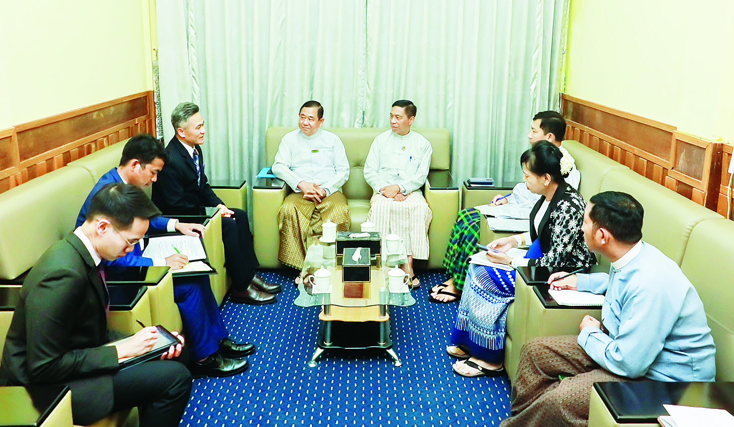 အမျိုးသားသဘာဝဘေးအန္တရာယ်ဆိုင်ရာ စီမံခန့်ခွဲမှုကော်မတီ ဒုတိယဥက္ကဋ္ဌ (၁) ပြည်ထဲရေးဝန်ကြီးဌာန ပြည်ထောင်စုဝန်ကြီး ဒုတိယဗိုလ်ချုပ်ကြီး ထွန်းထွန်းနောင်နှင့် ဒုတိယဥက္ကဋ္ဌ (၂) လူမှုဝန်ထမ်း၊ ကယ်ဆယ်ရေးနှင့် ပြန်လည်နေရာချထားရေးဝန်ကြီးဌာန ပြည်ထောင်စုဝန်ကြီး ဒေါက်တာစိုးဝင်းတို့သည် ယနေ့မွန်းလွဲပိုင်းတွင် မြန်မာနိုင်ငံဆိုင်ရာ ထိုင်းသံအမတ်ကြီး မစ္စတာမုံခွန်းဝိစစ်စတန်အား လူမှုဝန်ထမ်း၊ ကယ်ဆယ်ရေးနှင့် ပြန်လည်နေရာချထားရေးဝန်ကြီးဌာနရှိ သဘာဝဘေးအန္တရာယ်ဆိုင်ရာ စီမံခန့်ခွဲမှုဗဟိုဌာန (Disaster Management Centre) ဧည့်ခန်း၌ လက်ခံတွေ့ဆုံသည်။
