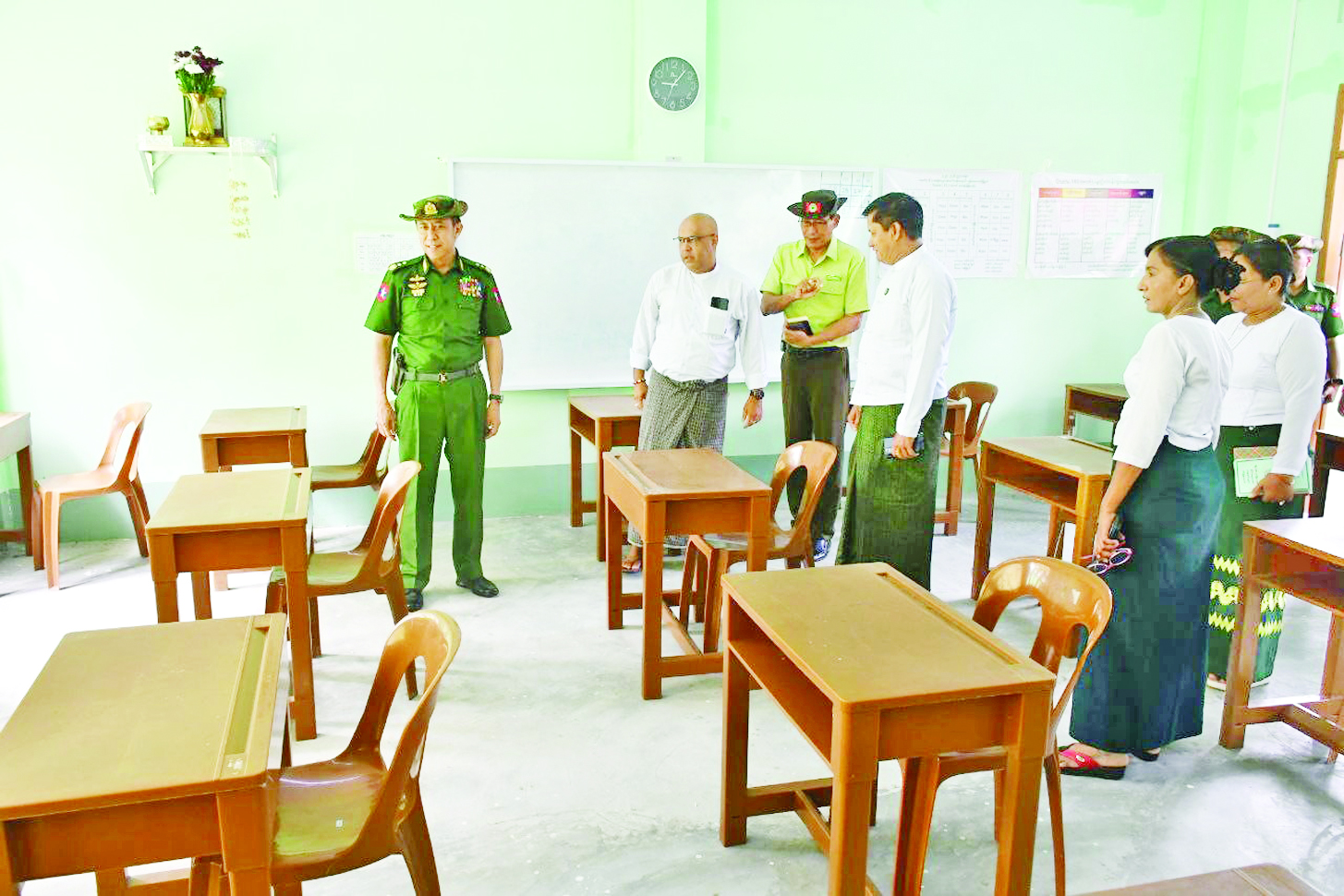ထို့အတူ ကာကွယ်ရေးဦးစီးချုပ်ရုံး(ကြည်း)မှ ဒုတိယဗိုလ်ချုပ်ကြီးစိုးတင့်နိုင်နှင့် တာဝန်ရှိသူများသည် မန္တလေးမြို့ အမရပူရမြို့နယ်သို့ သွားရောက်၍ ပြန်လည်ကျင်းပမည့် ၂၀၂၅ ခုနှစ် တက္ကသိုလ်ဝင် စာမေးပွဲအတွက် စာစစ်ဌာနများ ကြိုတင်ပြင်ဆင်ဆောင်ရွက်ထားရှိမှုအခြေအနေများကို ကြည့်ရှုစစ်ဆေး၍ ကျောင်းပတ်ဝန်းကျင်သန့်ရှင်းမှု စနစ်တကျစီစဉ်ဆောင်ရွက်ထားရေး၊ ကျောင်းသား ကျောင်းသူများ ဘေးကင်းလုံခြုံအေးချမ်းစွာ ဖြေဆိုနိုင်စေရေး၊ မေးခွန်း/အဖြေလွှာစသည့် စာရွက်စာတမ်းများကို စနစ်တကျကြိုတင်ပြင်ဆင်ဆောင်ရွက်နိုင်ရေး၊ ကျန်းမာရေးစောင့်ရှောက်မှုအကူအညီများ စီစဉ်ဆောင်ရွက်ထားရှိပေးနိုင်ရေး၊ စာမေးပွဲဖြေဆိုစဉ်ကာလအတွင်း ကျောင်းသား ကျောင်းသူများ အချိန်မီသွားလာနိုင်ရန် တာဝန်ရှိသူများက တတ်နိုင်သည့်နည်းလမ်းများဖြင့် ကူညီဆောင်ရွက်ပေးသွားရေးတို့ကို မှာကြားပြီး တာဝန်ရှိသူများ၏ တင်ပြချက်များအပေါ် လိုအပ်သည်များ ပေါင်းစပ်ညှိနှိုင်းဆောင်ရွက်ပေးသည်။