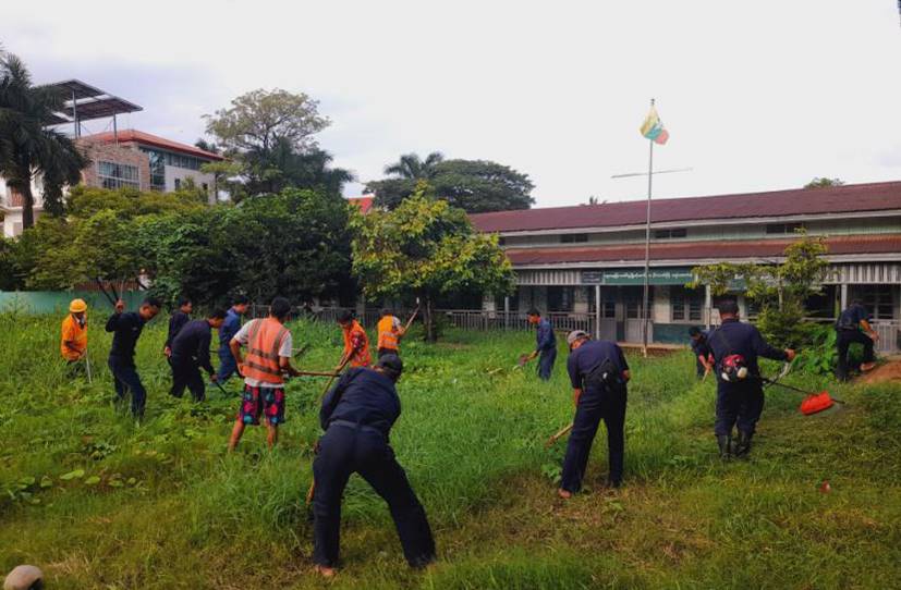 ထိုသို့ ဆောင်ရွက်ပေးလျက်ရှိရာ ယနေ့တွင် ရှမ်းပြည်နယ် (တောင်ပိုင်း)၊ အောင်ပန်းမြို့နယ်နှင့် ဗထူးတပ်မြို့တို၌လည်းကောင်း၊ ရန်ကုန်တိုင်းဒေသကြီး၊ မင်္ဂလာဒုံမြို့နယ်အပါအဝင် မြို့နယ် (၂၀) မြို့နယ်တို့၌လည်းကောင်း သက်ဆိုင်ရာတိုင်းစစ်ဌာနချုပ်များမှ နယ်မြေခံတပ်မတော်သားများ၊ မြန်မာနိုင်ငံရဲတပ်ဖွဲ့ဝင်များ၊ မီးသတ်တပ်ဖွဲ့ဝင်များ၊ ဌာနဆိုင်ရာဝန်ထမ်းများ၊ စစ်မှုထမ်းဟောင်းအဖွဲ့ဝင်များ၊ ပြည်သူ့စစ် (ဌာနေ) တပ်ဖွဲ့ဝင်များ၊ ဒေသခံပြည်သူများ၊ လူမှုရေးအသင်းအဖွဲ့များက အခြေခံပညာကျောင်းများ အတွင်း/အပြင်ရှိ ချုံနွယ်ပေါင်းမြက်များ ခုတ်ထွင်ရှင်းလင်းခြင်း၊ အမှိုက်များရှင်းလင်းခြင်း၊ ရေစီးရေလာကောင်းမွန်စေရေး ရေနုတ်မြောင်းများတူးဖော်ပေးခြင်း၊ ရေကန်များတွင် အဘိတ်ဆေးများခတ်ပေးခြင်း၊ ခြင်ခိုအောင်းနိုင်သည့် နေရာများအား ခြင်ဆေးဖျန်းခြင်းနှင့် ကျန်းမာရေးအသိပညာပေး လက်ကမ်းစာစောင်များ ဖြန့်ဝေပေးခြင်းများကို စုပေါင်းဆောင်ရွက်ပေးကြသည်။