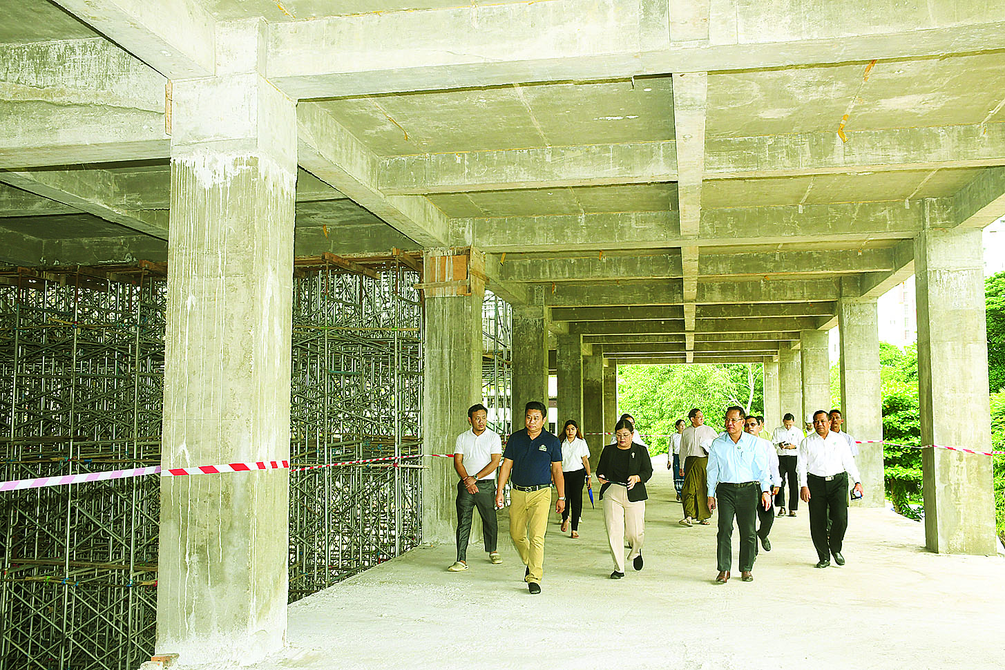 ထို့နောက် ပြည်ထောင်စုဝန်ကြီးသည် စာဆိုဗိမာန်သုံးထပ် (RC) အဆောက်အအုံတည်ဆောက်နေမှုကို ကြည့်ရှုစစ်ဆေးသည်။
