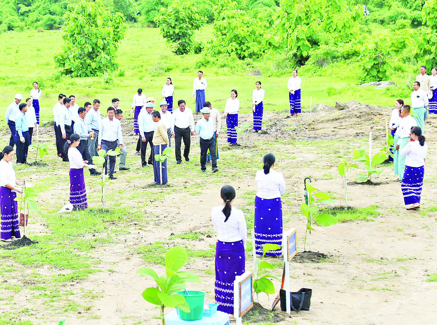 ဦးစွာ ပြည်ထောင်စုဝန်ကြီး ဦးမင်းနောင်နှင့် ဒုတိယဝန်ကြီးများ၊ တက်ရောက်လာကြသည့် ဌာနဆိုင်ရာများသည် သတ်မှတ်နေရာများ၌ ရတနာတန်းဝင် ကျွန်းပင်များနှင့် မန်ဂျန်ရှားပင်များကို စိုက်ပျိုးကြပြီး ပြည်ထောင်စုဝန်ကြီးနှင့်အဖွဲ့သည် သတ်မှတ်နေရာများတွင် ဦးစီးဌာနအလိုက် ဝန်ထမ်းများ၏ မိုးရာသီသစ်ပင်စိုက်ပျိုးမှု များကို ကြည့်ရှုအားပေးကြပြီး ပြည်ထောင်စုဝန်ကြီးက ယခုကဲ့သို့ မိုးရာသီသစ်ပင်စိုက်ပျိုးပွဲ ကျင်းပဆောင်ရွက်ပေးခြင်းသည် ဆည်တမံဝန်းကျင် စိမ်းလန်းစိုပြည်ရေးသာမက ဒေသ၏သဘာဝရာသီဥတု ညီညွတ်မျှတရေးကို အထောက်အကူဖြစ်စေမည့် သစ်ပင်သစ်တောများအဖြစ် ကောင်းစွာရှင်သန်ဖြစ်ထွန်းစေသည့်အတွက် ဂရုတစိုက် ပြုစုထိန်းသိမ်းသွားကြရန် တာဝန်ရှိသူများအား မှာကြားသည်။