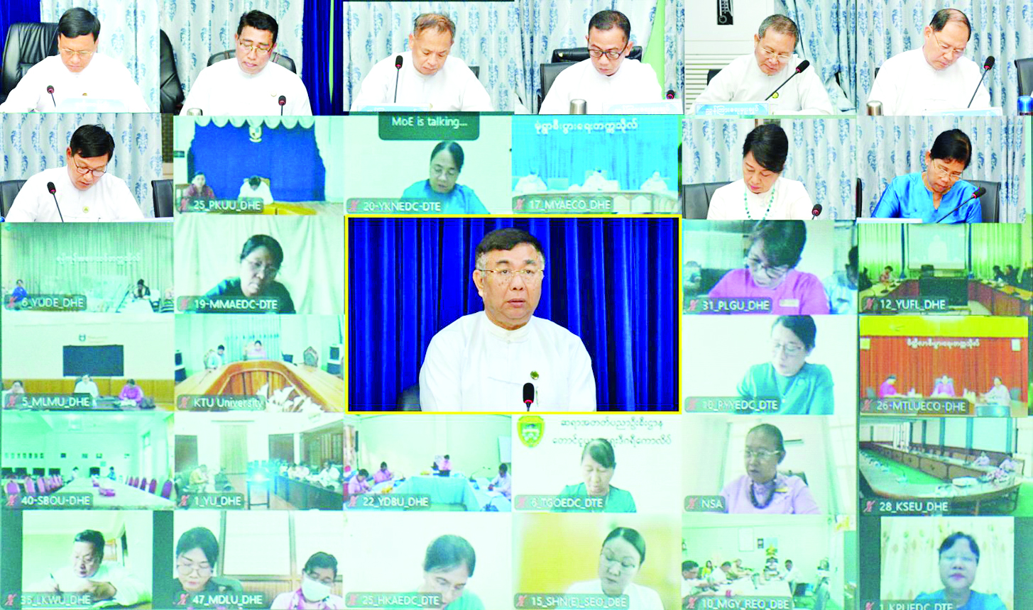 ပညာရေးဝန်ကြီးဌာနအောက်ရှိ ဦးစီးဌာနများ၊ တက္ကသိုလ်၊ ပညာရေးဒီဂရီကောလိပ်များမှ ကျောင်းအုပ်ကြီးများ၊ တိုင်းဒေသကြီး/ပြည်နယ် ပညာရေးမှူးများအား လမ်းညွှန်အမှာစကားပြောကြားခြင်းကို ယနေ့နံနက်ပိုင်းတွင် နေပြည်တော် ပညာရေးဝန်ကြီးဌာန ရုံးအမှတ် (၁၃) ရှိ အစည်းအဝေးခန်းမ၌ ကျင်းပသည်။