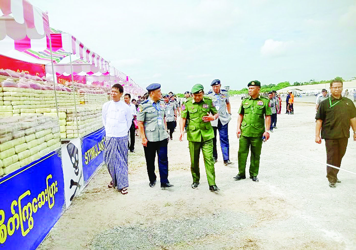 အပြည်ပြည်ဆိုင်ရာ မူးယစ်ဆေးဝါးအလွဲသုံးမှုနှင့် တရားမဝင်ရောင်းဝယ်မှုတိုက်ဖျက်ရေးနေ့ အထိမ်းအမှတ်အခမ်းအနားများကို ယနေ့တွင် နေပြည်တော်ကောင်စီနယ်မြေ၊ တိုင်းဒေသကြီး/ ပြည်နယ်များတွင် ကျင်းပပြီး တောင်ကြီး၊ ရန်ကုန်နှင့် မန္တလေးမြို့တို့တွင် တစ်နှစ်တာကာလအတွင်း ဖမ်းဆီးရမိမူးယစ်ဆေးဝါးများ၊ ဓာတုပစ္စည်းများ ဖျက်ဆီးခြင်းကို ကျန်းမာရေးဝန်ကြီးဌာနမှ ထုတ်ပြန်ထားသည့် ကိုဗစ်-၁၉ ရောဂါဆိုင်ရာ ညွှန်ကြားချက်များနှင့်အညီ ကျင်းပကာ မူးယစ်ဆေးဝါးတားဆီးနှိမ်နင်းရေးလုပ်ငန်းများတွင် ထူးချွန်စွာ စွမ်းစွမ်းတမံဆောင်ရွက်ခဲ့ကြသူများကို ဆုများချီးမြှင့်ကြသည်။