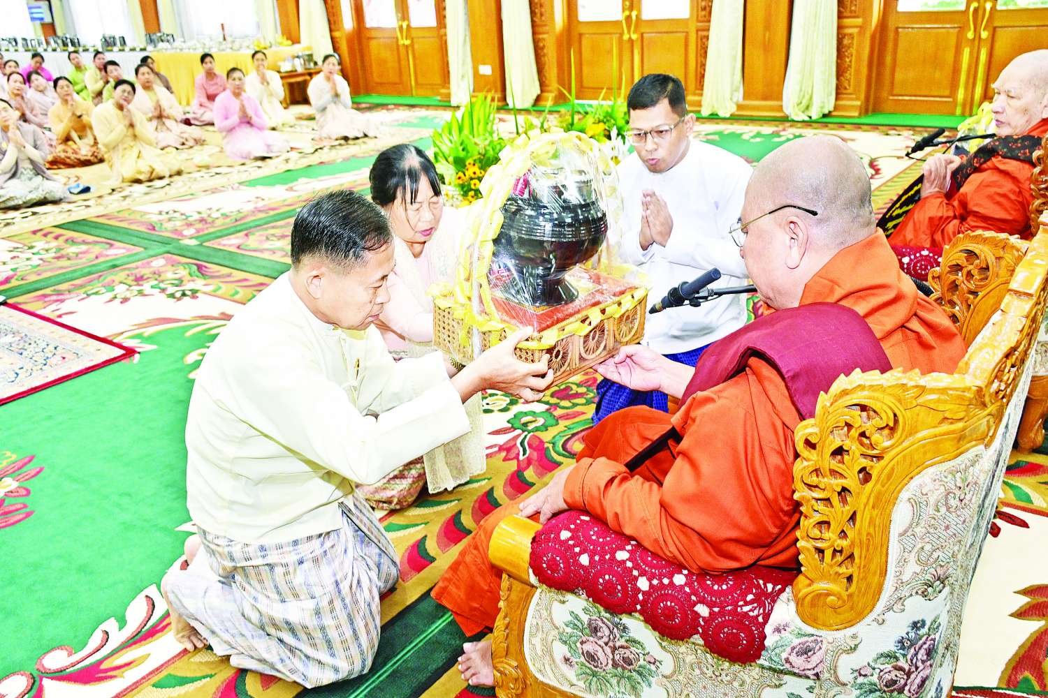 ယင်းနောက် နိုင်ငံတော်စီမံအုပ်ချုပ်ရေးကောင်စီဒုတိယဥက္ကဋ္ဌ ဒုတိယတပ်မတော်ကာကွယ်ရေးဦးစီးချုပ် ကာကွယ်ရေးဦးစီးချုပ် (ကြည်း) နှင့် ဇနီးက နိုင်ငံတော်သံဃမဟာနာယကအဖွဲ့အကျိုးတော်ဆောင် မစိုးရိမ်တိုက်သစ်ဆရာတော်ကြီးထံ ဝါဆိုသင်္ကန်းနှင့် လှူဖွယ်ပစ္စည်းများကို ဆက်ကပ်လှူဒါန်းသည်။
