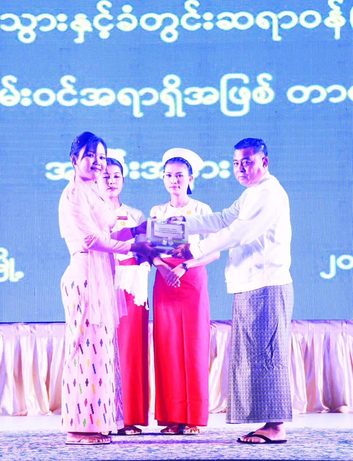 ၎င်းနောက် နိုင်ငံတော်စီမံအုပ်ချုပ်ရေးကောင်စီဥက္ကဋ္ဌ နိုင်ငံတော်ဝန်ကြီးချုပ်က ဖျော်ဖြေတင်ဆက်ခဲ့ကြသည့် ကျောင်းသား၊ ကျောင်းသူများနှင့် ဝန်ထမ်းများအား ဂုဏ်ပြုသစ်သီးခြင်းနှင့် ချီးမြှင့်ငွေများပေးအပ်သည်။