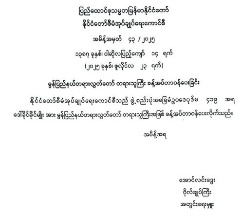 ဝန်ကြီးဌာန ကြေညာချက်များ