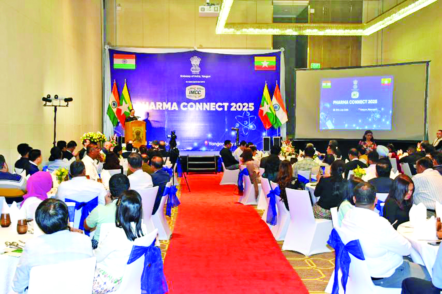 ကျန်းမာရေးဝန်ကြီးဌာန ပြည်ထောင်စုဝန်ကြီး ဒေါက်တာသက်ခိုင်ဝင်းသည် ယနေ့ညနေပိုင်းတွင် ရန်ကုန်မြို့ Pan Pacific Hotel ၌ မြန်မာနိုင်ငံဆိုင်ရာ အိန္ဒိယသမ္မတနိုင်ငံသံရုံးနှင့် အိန္ဒိယ-မြန်မာကုန်သည် ကြီးများအသင်းတို့ ကြီးမှူးကျင်းပသည့် Pharma Connect 2025 သို့ တက်ရောက်အဖွင့်အမှာစကား ပြောကြားသည်။