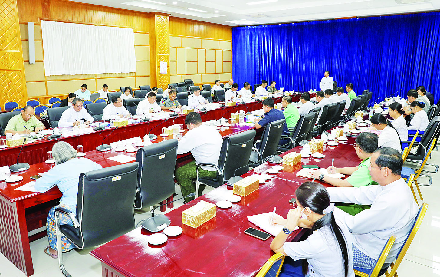 အစည်းအဝေးသို့ တိုးတက်ခိုင်မာအားကောင်းသည့် လူမှုအသိုက်အဝန်းဖော်ဆောင်ရေး လုပ်ငန်းကော်မတီဥက္ကဋ္ဌ နိုင်ငံတော်စီမံအုပ်ချုပ်ရေးကောင်စီဥက္ကဋ္ဌရုံးဝန်ကြီးဌာန (၂) ပြည်ထောင်စုဝန်ကြီး ဦးကိုကိုလှိုင်၊ နိုင်ငံတော်စီမံအုပ်ချုပ်ရေးကောင်စီဥက္ကဋ္ဌ၏ အကြံပေးအဖွဲ့ဝင် ဒေါက်တာရင်ရင်နွယ်၊ ဒုတိယဝန်ကြီးများ၊ ဖိတ်ကြားထားသူများနှင့် ဌာနဆိုင်ရာ တာဝန်ရှိသူများ တက်ရောက်ကြသည်။
