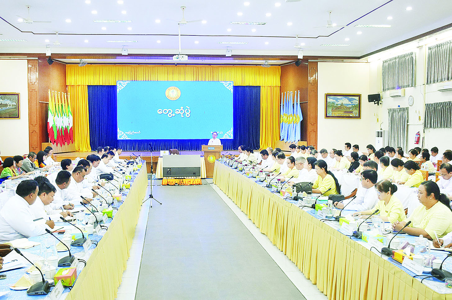 ထို့နောက် ဒုတိယဝန်ကြီး ပါမောက္ခဒေါက်တာ အေးထွန်းနှင့် ညွှန်ကြားရေးမှူးချုပ်များက ကုသရေးလုပ်ငန်းများ တိုးတက်စေရေး အမှာစကားများ ပြောကြားကြပြီး တက်ရောက်လာသည့် ဆေးရုံအုပ်ကြီးများ၊ အထူးကုဆရာဝန်ကြီးများက လုပ်ငန်းဆောင်ရွက်မှုနှင့် လိုအပ်ချက်များကို တင်ပြကြရာ ပြည်ထောင်စုဝန်ကြီး၊ ဒုတိယဝန်ကြီးနှင့် ညွှန်ကြားရေးမှူးချုပ်များက ဖြည့်ဆည်းဆောင်ရွက်ပေးသည်။