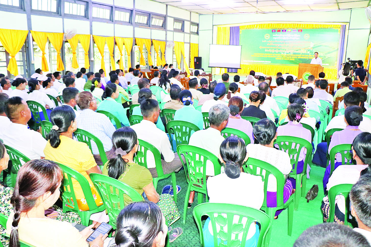 မဲခေါင်-လန်ချန်း ပူးပေါင်းဆောင်ရွက်မှုအထူးရန်ပုံ ငွေ (၂၀၂၃) ဖြင့် ဆောင်ရွက်သည့် ကံဆိပ်ကျေးရွာလူမှုစီးပွားဖွံ့ဖြိုးရေးအတွက် ဆိုလာအသေးစားဓာတ်အားပေးစနစ်နှင့် ရေပေးဝေရေးလုပ်ငန်းစီမံကိန်း ပြီးမြောက်အောင်မြင်ခြင်းအခမ်းအနားကို ယနေ့နံနက်ပိုင်းက ဒေးဒရဲမြို့နယ် အထွေထွေအုပ်ချုပ်ရေးဦးစီးဌာန အစည်းအဝေးခန်းမ၌ ကျင်းပရာ သမဝါယမနှင့်ကျေးလက်ဖွံ့ဖြိုးရေးဝန်ကြီးဌာန ပြည်ထောင်စုဝန်ကြီး ဦးလှမိုး၊ ဧရာဝတီတိုင်းဒေသကြီး ဝန်ကြီးချုပ် ဦးတင်မောင်ဝင်း၊ မြန်မာနိုင်ငံဆိုင်ရာ တရုတ်ပြည်သူ့သမ္မတနိုင်ငံ သံအမတ်ကြီး Ms. Ma Jia နှင့် တာဝန်ရှိသူများ တက်ရောက်ကြသည်။