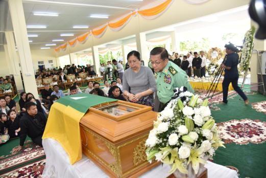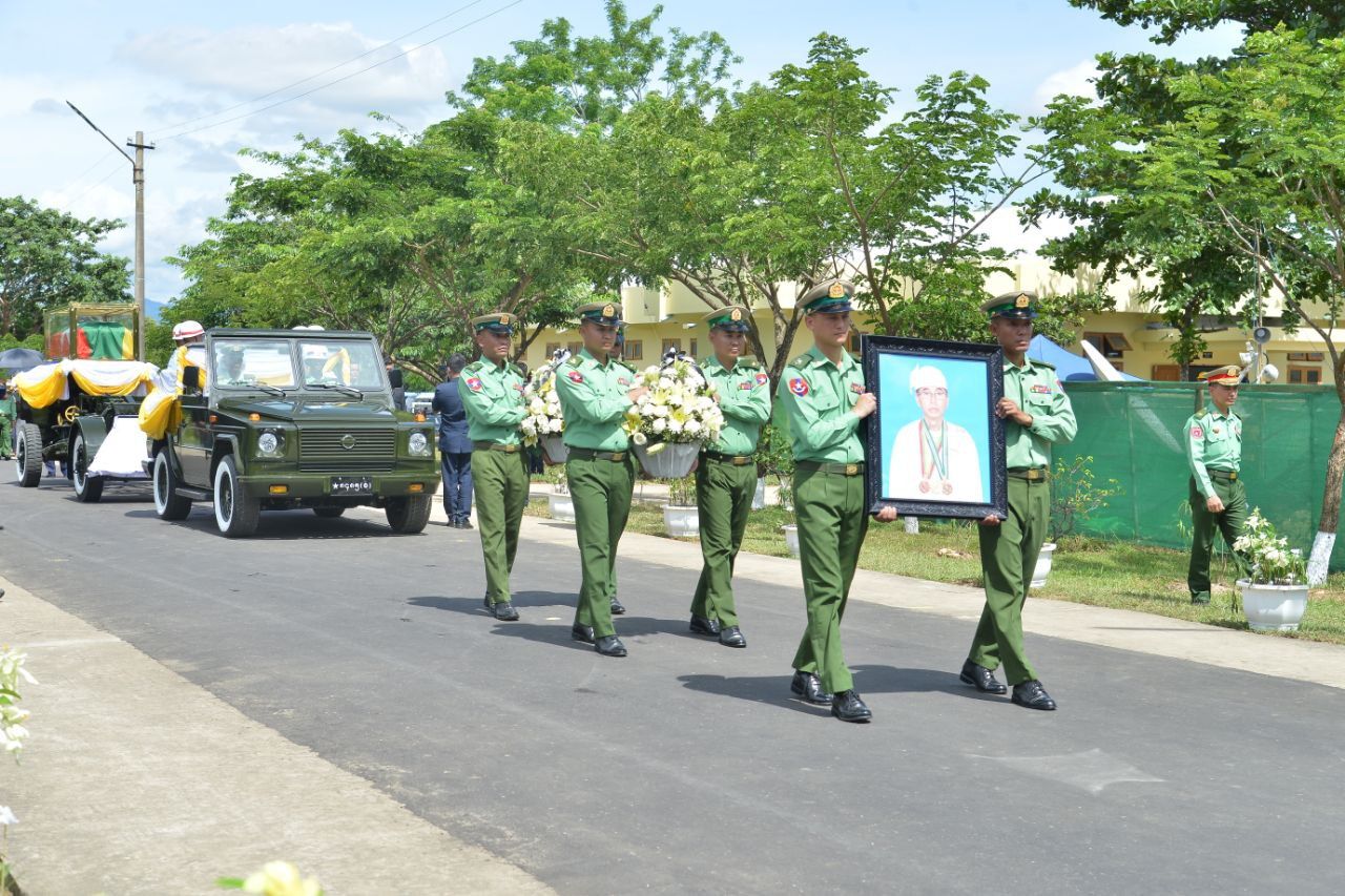 ယင်းနောက် နိုင်ငံတော်လုံခြုံရေးနှင့် အေးချမ်းသာယာရေးကော်မရှင်ဥက္ကဋ္ဌ၊ ကော်မရှင်ဒုတိယဥက္ကဋ္ဌနှင့် ပြည်ထောင်စုအဆင့်ပုဂ္ဂိုလ်များ၊ ကာကွယ်ရေးဦးစီးချုပ်ရုံးမှ အဆင့်မြင့်တပ်မတော်အရာရှိကြီးများက နေရာယူကြပြီး တပ်မတော်ဂုဏ်ပြု သေနတ်ပစ်အဖွဲ့က ဂုဏ်ပြုစစ်ရေးပြအစီအစဉ်အတိုင်းဆောင်ရွက်ကာ သေနတ်မြေစိုက်ဦးခိုက်အလေးပြုကြပြီး သေနတ်မြှောက်အလေးပြုကြသည်။