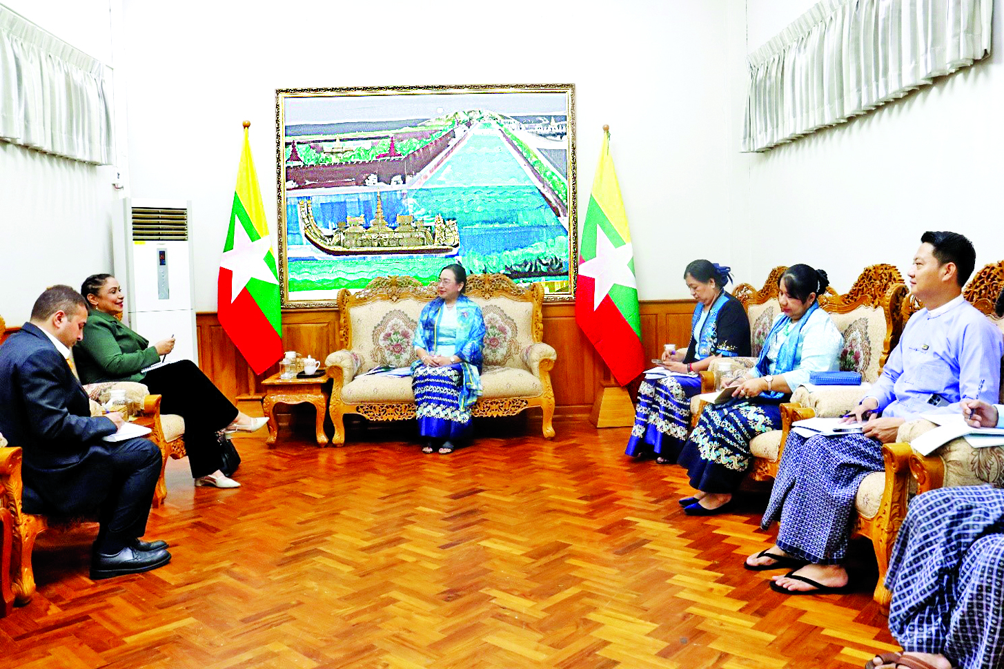 ရင်းနှီးမြှုပ်နှံမှုနှင့် နိုင်ငံခြားစီးပွားဆက်သွယ်ရေးဝန်ကြီးဌာန ပြည်ထောင်စုဝန်ကြီး ဒေါက်တာဝါဝါမောင်သည် ရန်ကုန်မြို့အခြေစိုက်အီဂျစ်နိုင်ငံ သံအမတ်ကြီး H.E. Mrs. Aya Saad Mohamed Abdelkarim အား ယနေ့မွန်းလွဲပိုင်းက နေပြည်တော်ရှိ အဆိုပါဝန်ကြီးဌာန၌ လက်ခံတွေ့ဆုံသည်။