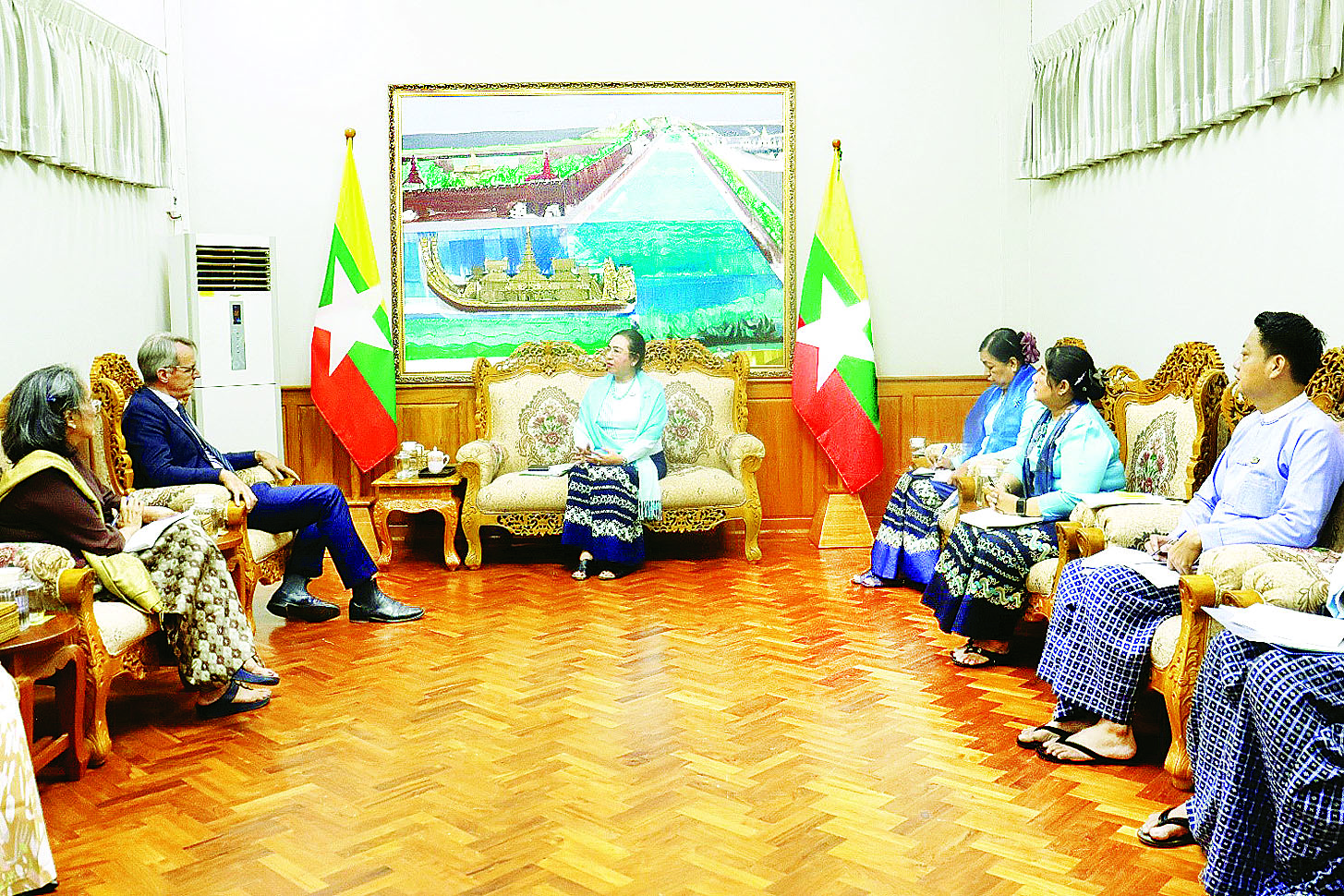 ရင်းနှီးမြှုပ်နှံမှုနှင့်နိုင်ငံခြားစီးပွားဆက်သွယ်ရေးဝန်ကြီးဌာန ပြည်ထောင်စုဝန်ကြီး ဒေါက်တာ ဝါဝါမောင်သည် ကုလသမဂ္ဂယာယီဌာနေ ညှိနှိုင်းရေးမှူး/ လူသားချင်းစာနာထောက်ထားမှုဆိုင်ရာ ယာယီညှိနှိုင်းရေးမှူးနှင့် ကမ္ဘာ့စားနပ်ရိက္ခာအစီအစဉ် (World Food Programme – WFP) ၏ မြန်မာနိုင်ငံဆိုင်ရာ ကိုယ်စားလှယ် Mr. Michael John Dunford ဦးဆောင်သော ကိုယ်စားလှယ်အဖွဲ့အား ယနေ့နံနက်ပိုင်းတွင် ရင်းနှီးမြှုပ်နှံမှုနှင့်နိုင်ငံခြားစီးပွားဆက်သွယ်ရေးဝန်ကြီးဌာန ရုံးအမှတ် (၁) ၌ လက်ခံတွေ့ဆုံသည်။