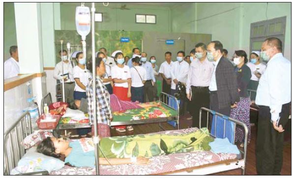 ဆက်လက်၍ အစည်းအဝေးခန်းမ၌ ဆေးရုံအုပ်ကြီး၊ အထူးကုဆရာဝန်ကြီးများ၊ သူနာပြုကြီးများ၊ ကျန်းမာရေးဝန်ထမ်းများ၊ မိတ္ထီလာခရိုင် ပြည်သူ့ကျန်းမာရေးဦးစီးဌာန၊ ကုသရေးဦးစီးဌာနတို့မှ ကျန်းမာရေးဝန်ထမ်းများအားတွေ့ဆုံ၍ မြန်မာနိုင်ငံမျှော်မှန်းလူ့သက်တမ်းကို ပိုမိုကောင်းမွန်စေရေး၊ မိခင်သေဆုံးနှုန်း၊ ကလေးသေဆုံးနှုန်း၊ ကူးစက်ရောဂါ ဖြစ်ပွားမှုနှုန်းလျော့နည်းစေရေး ကျန်းမာရေးမြှင့်တင်မှုများ၊ ပြည်သူ့ကျန်းမာရေးလုပ်ငန်းများ၊ ရောဂါကာကွယ်ရေးလုပ်ငန်းများ၊ အခြေခံကျန်းမာရေး စောင့်ရှောက်မှုလုပ်ငန်းများ ပိုမိုကြိုးပမ်းဆောင်ရွက်ရန်၊ မိခင်ကလေးကျန်းမာရေးစောင့်ရှောက်မှု၊ ကျောင်းကျန်းမာရေး၊ ကာကွယ်ဆေးထိုးနှံတိုက်ကျွေးရေး၊ ကူးစက်ရောဂါကာကွယ်နှိမ်နင်းရေး လုပ်ငန်းများကို အရှိန်အဟုန်မပြတ် ကြိုးပမ်းဆောင်ရွက်ကြရန်၊ သွေးလွန်တုပ်ကွေး ဖြစ်ပွားမှုများပြားတတ်သည့် ရာသီဖြစ်သဖြင့် ခြင်နှိမ်နင်းရေးလုပ်ငန်းများ ထိထိရောက်ရောက် ဆောင်ရွက်ရန်မှာကြားပြီး တက်ရောက်လာသူများ၏ တင်ပြချက်များအပေါ် ပေါင်းစပ်ညှိနှိုင်းဆောင်ရွက်ပေးခဲ့သည်။