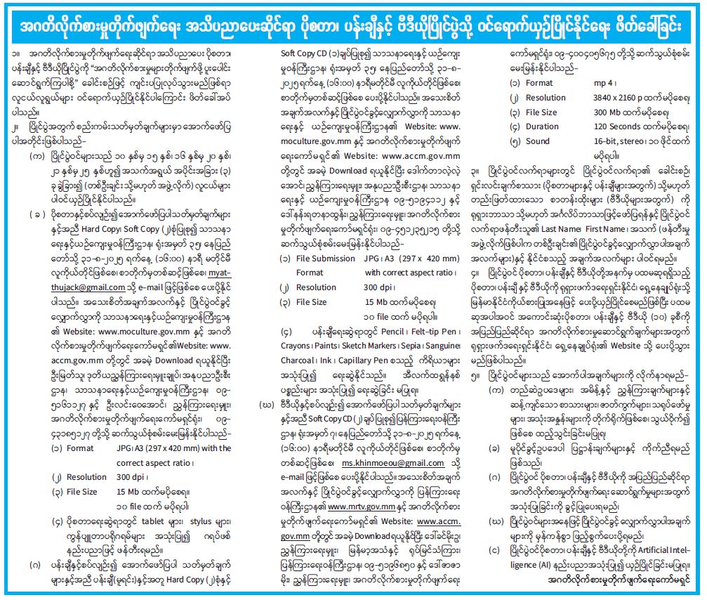အဂတိလိုက်စားမှုတိုက်ဖျက်ရေး အသိပညာပေးဆိုင်ရာ ပိုစတာ၊ ပန်းချီနှင့် ဗီဒီယိုပြိုင်ပွဲသို့ ဝင်ရောက်ယှဉ်ပြိုင်နိုင်ရေး ဖိတ်ခေါ်ခြင်း 08/18/2025