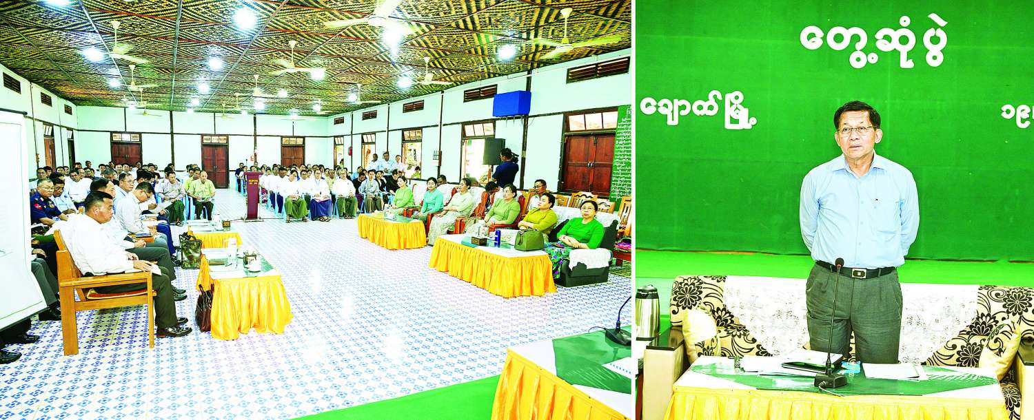 ဆက်လက်၍ မကွေးတိုင်းဒေသကြီးဝန်ကြီးချုပ်က ချောက်မြို့နယ်နှင့် ရေနံချောင်းမြို့နယ်အတွင်း ယခုနှစ်မိုးရာသီတွင် မိုးကောင်းစွာရွာသွန်းမှုကြောင့် သီးနှံများစိုက်ပျိုးမှုကို ပိုမိုဖြစ်ထွန်းစေမှု၊ မြစ်ရေတင်လုပ်ငန်း များဖြင့်လည်း စိုက်ပျိုးရေလုံလောက်စွာရရှိရေး ဆောင်ရွက်လျက်ရှိမှု၊ တစ်ဧက ပန်းတိုင်အထွက်နှုန်းများ တိုးတက်ရေးဆောင်ရွက်လျက်ရှိမှု အခြေအနေများနှင့် ပတ်သက်၍ ရှင်းလင်း တင်ပြသည်။