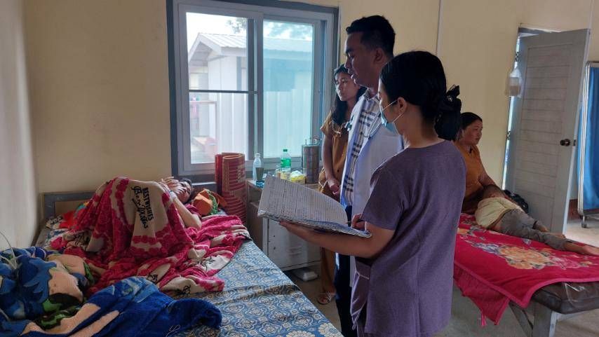 ထိုသို့ ဆောင်ရွက်ပေးလျက်ရှိရာ ယနေ့တွင် ပြည်သူ့ဆေးရုံကြီး၌ ပြင်ပလူနာ စုစုပေါင်း ၃၉ ဦးတို့ကို ငှက်ဖျားရောဂါ၊ တုပ်ကွေးရောဂါ၊ အထွေထွေရောဂါတို့နှင့်ပတ်သက်၍ လိုအပ်သည့် ကျန်းမာရေးစစ်ဆေးကုသပေးခြင်းများ ဆောင်ရွက်ပေးခြင်း၊ ဒေသခံတိုင်းရင်းသားပြည်သူ ၁၄ ဦးကို သွေးအမျိုးအစားစစ်ဆေးပေးခြင်းနှင့် ဒေသခံတိုင်းရင်းသားပြည်သူ ၅ ဦးကို ငှက်ဖျားရောဂါပိုး စစ်ဆေးပေးခြင်းများ ဆောင်ရွက်ပေးသည်။ ထို့ပြင် အတွင်းလူနာအဖြစ် တက်ရောက်ဆေးကုသမှုခံယူလျက်ရှိသူ ၃၂ ဦးတို့အား ဆေးအဖွဲ့များက လိုအပ်သည့် ကျန်းမာရေးစောင့်ရှောက်မှုလုပ်ငန်းများ ဆောင်ရွက်ပေးလျက်ရှိကြောင်း သတင်းရရှိသည်။