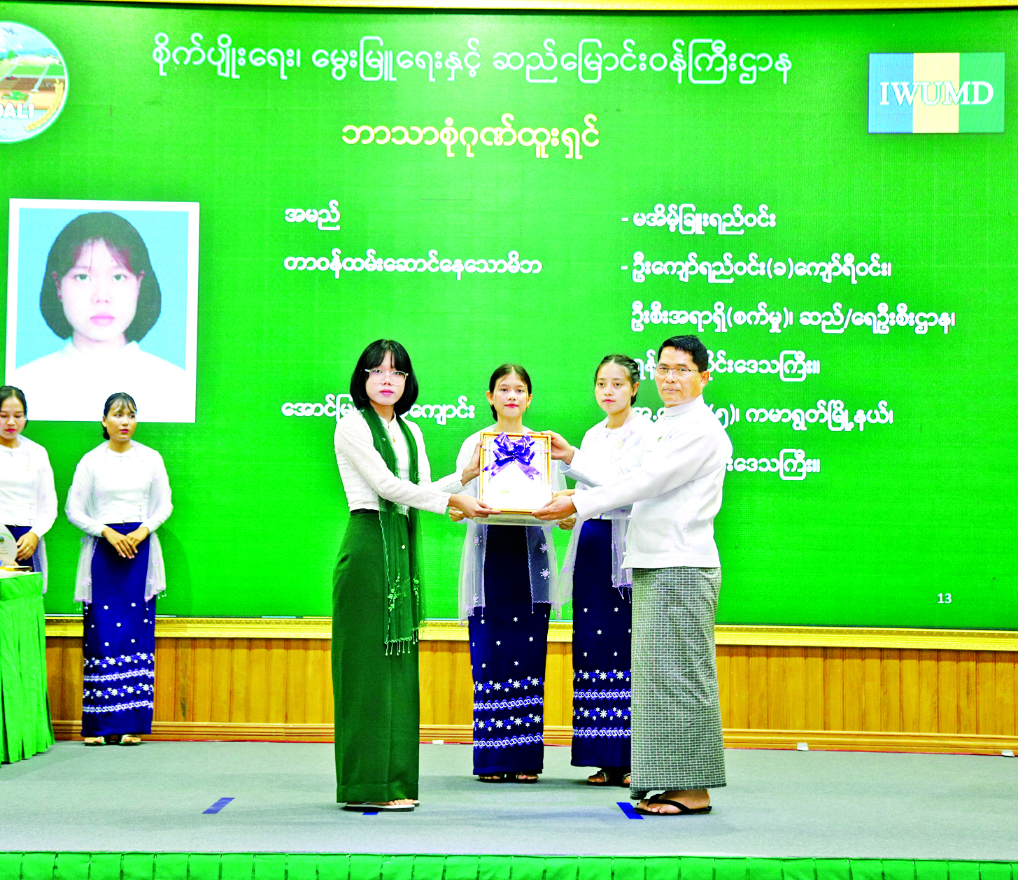 ၂၀၂၄-၂၀၂၅ ပညာသင်နှစ် တက္ကသိုလ်ဝင် စာမေးပွဲ၌ ထူးချွန်စွာ အောင်မြင်ခဲ့ကြသည့် နိုင်ငံ့ဝန်ထမ်းသားသမီး ကျောင်းသား ကျောင်းသူများနှင့် နိုင်ငံ့ဝန်ထမ်းတက္ကသိုလ် သင်တန်းများ၌ ထူးချွန်ဆုရရှိခဲ့ကြသည့် ဝန်ထမ်းများအား ဂုဏ်ပြုချီးမြှင့်ခြင်းအခမ်းအနားကို ယနေ့နံနက်ပိုင်းတွင် နေပြည်တော် ရုံးအမှတ်(၁၅) စုဝေးဆောင်ခန်းမ၌ကျင်းပရာ စိုက်ပျိုးရေး၊ မွေးမြူရေးနှင့် ဆည်မြောင်းဝန်ကြီးဌာန ပြည်ထောင်စုဝန်ကြီး ဦးမင်းနောင်၊ ဒုတိယဝန်ကြီးများ၊ အမြဲတမ်းအတွင်းဝန်၊ ပြည်ထောင်စုဝန်ကြီးရုံး၊ ဦးစီးဌာနများနှင့် တက္ကသိုလ်များမှ အရာထမ်း၊ အမှုထမ်းများ၊ ဂုဏ်ထူးရထူးချွန်ကျောင်းသား ကျောင်းသူများ တက်ရောက်ကြသည်။