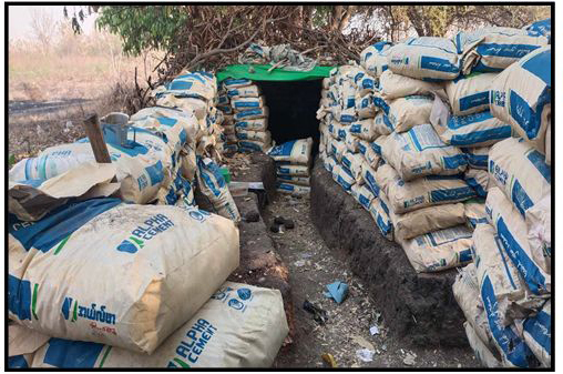 ထိုသို့ တိုက်ခိုက်သိမ်းပိုက်စဉ် TNLA နှင့် MDY - PDF အမည်ခံအကြမ်းဖက်သမားများ ပူးပေါင်းအဖွဲ့သည် ၎င်းတို့၏ အခိုင်အမာနေရာများအား အယ်လ်ဖာဘိလပ်မြေစက်ရုံမှ ထွက်ရှိပြီး ဘိလပ်မြေများ၊ အယ်လ်ဖာတံဆိပ်ပါ ဘိလပ်မြေအိတ်ခွံအမြောက်အများကို အသုံးပြု၍ ကွန်ကရိဘန်ကာများ၊ မြေခွေးကျင်းများနှင့် ဆက်သွယ်ရေးမြောင်းများကို တည်ဆောက်တုန့်ပြန်ခဲ့ကြခြင်းဖြစ်သည်။ ထိုသို့ အခိုင်အမာနေရာများ ပြုလုပ်၍ တပ်မတော်စစ်ကြောင်းများကို အဆင့်ဆင့်ပိတ်ဆို့တိုက်ခိုက်ခဲ့သော်လည်း တပ်မတော်စစ်ကြောင်းများက စက်ရုံနှင့် သတ္တုတွင်းနေရာများ ပြန်လည်သိမ်းပိုက်ရာတွင် စက်ရုံ၊ အလုပ်ရုံနေရာများရှိ အဆောက်အအုံများနှင့် စက်ပစ္စည်းကိရိယာများ ထိခိုက်ပျက်စီးမှု အနည်းဆုံးဖြစ်စေရေးဂရုပြု၍ ကန့်သတ်ချက်များကြားမှ ထိန်းထိန်းသိမ်းသိမ်းဖြင့် တိုက်စစ်ဆင်ခဲ့ရသည်။