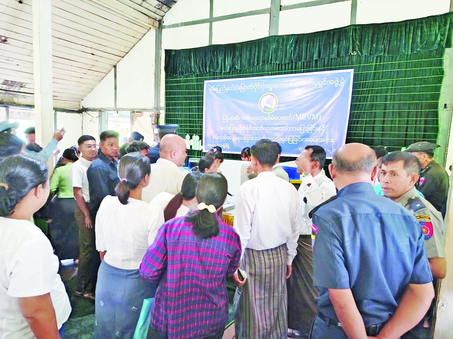 ထို့နောက် တက်ရောက်လာသူများက မြန်မာအီလက်ထရောနစ် မဲပေးစက်ဖြင့် တစ်ဦးချင်း လက်တွေ့စမ်းသပ်မဲပေးခဲ့ကြကြောင်း သိရသည်။