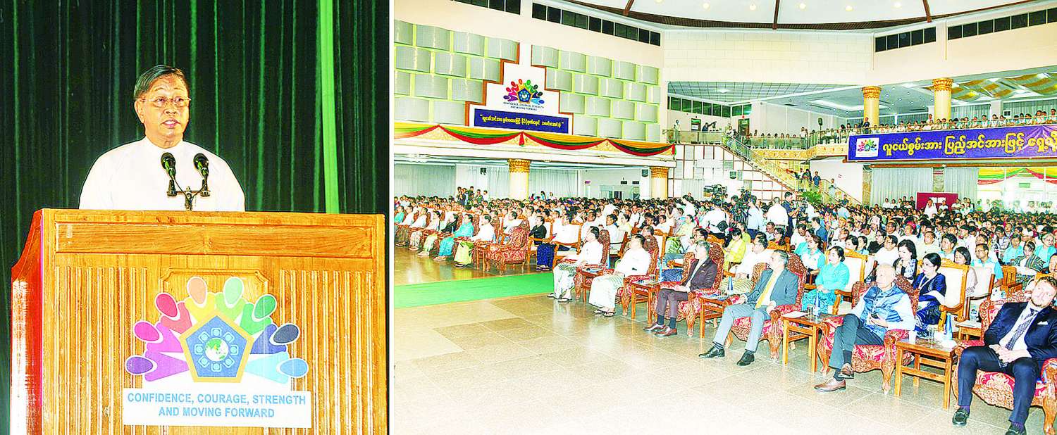 ယနေ့လူငယ်များသည် အနာဂတ်နိုင်ငံတော်ကို ဖန်တီးတည်ဆောက်ကြမည့် နိုင်ငံ၏ လူသားအရင်းအမြစ်များဖြစ်ပြီး နိုင်ငံ၏အနာဂတ်ခေါင်းဆောင်များလည်းဖြစ်ကြောင်း၊ နိုင်ငံတော်အစိုးရအနေဖြင့် လူငယ်စွမ်းအားစုတစ်ရပ်လုံးသည် နိုင်ငံတော်၏ အနာဂတ်များဖြစ်သည်ဟု ယုံကြည်တန်ဖိုးထားသည့်အတွက် လူငယ်ရေးရာ မူဝါဒများ၊ လူငယ်ဖွံ့ဖြိုးရေးအစီအမံများကို ခေတ်နှင့်အညီ ချမှတ်ဖော်ဆောင်ပေးလျက်ရှိပါကြောင်း၊ အကြောင်းကြောင်းကြောင့် လမ်းမှားရောက်ပြီး အနာဂတ်ပျောက်ဆုံးနေသည့် လူငယ်လူရွယ်များကို မိဘနှင့် သားသမီးကဲ့သို့ မေတ္တာထားကာ လမ်းကြောင်းမှန်ကို ပြန်လည်ရောက်ရှိစေရေးနှင့် လူငယ်များ၏ဘဝ တိုးတက်ရေးအတွက်နည်းလမ်းများ ရှာဖွေဖော်ဆောင်ပေးလျက်ရှိပါကြောင်း၊ လူငယ်အင်အားစုများသည် စိတ်ဓာတ်နှင့် အတွေးအခေါ်မြင့်မားသူများ၊ စွမ်းရည်ထက်မြက်သူများ၊ ရိုးသားဖြောင့်မတ်မှန်ကန်သူများဖြစ်ကြမှသာ နိုင်ငံကိုတိုးတက်ကောင်းမွန်အောင် တည်ဆောက်သွားနိုင်မည်ဖြစ်သည်ကို အလေးထား ပြောကြားလိုပါကြောင်း။