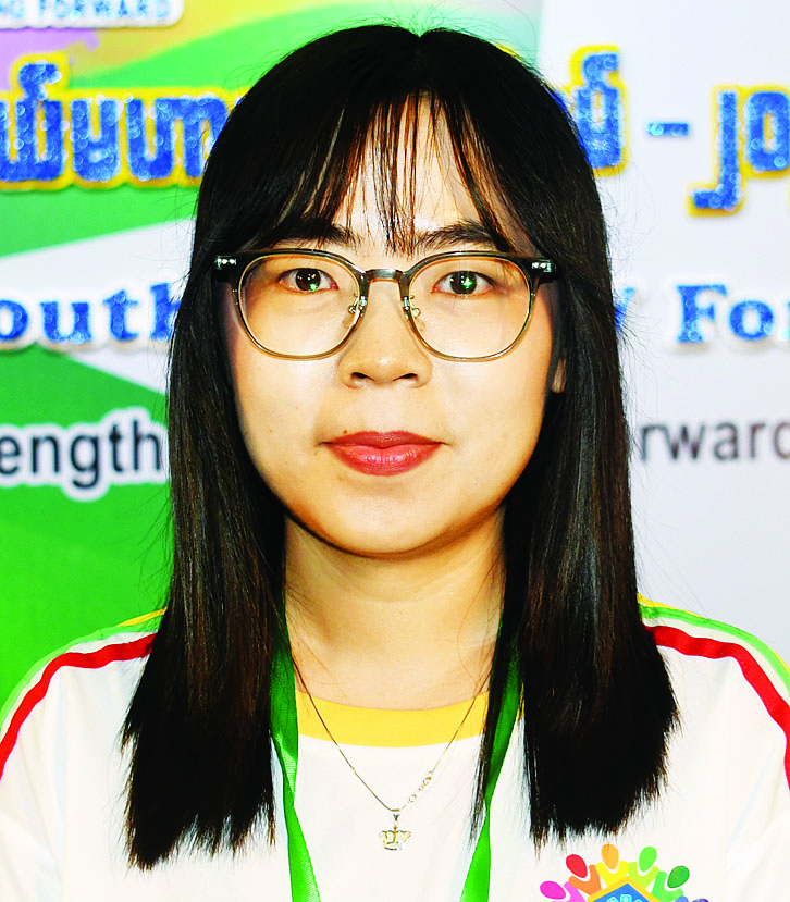 ကျွန်မက အခုဖိုရမ်ကို ရခိုင်ပြည်နယ်ကိုယ်စားပြု တက်ရောက်တာဖြစ်ပါတယ်။ ဒီနေ့ကျင်းပတဲ့ ဖိုရမ်ဟာ တိုင်းရင်းသားတွေကြားမှာ ချစ်ကြည်ရင်းနှီးမှုကို ဖြစ်ပေါ်စေပြီး စည်းလုံးညီညွတ်မှုကို ပိုမိုရရှိစေတယ်လို့ မြင်ပါတယ်။ ပြီးတော့ ဒီဖိုရမ်က နိုင်ငံနဲ့ လူမျိုးအတွက် အကျိုးကျေးဇူးတွေ အများကြီးရရှိအောင် အထောက်အပံ့ဖြစ်စေတယ်လို့ ယုံကြည်ပါတယ်။ ကျွန်မတို့လူငယ်တွေဟာ ဖိုရမ်ကရရှိလာတဲ့ အတွေးအမြင်တွေ၊ အသိပညာတွေကို လက်တွေ့အသုံးချပြီးတော့ ကိုယ့်ဒေသကောင်းကျိုး၊ ကိုယ့်နိုင်ငံကောင်းကျိုးကို ဖော်ဆောင်သွားနိုင်မယ်။ ဒီလိုမျိုးလူငယ်တစ်ဦးဖြစ်စေဖို့ အကောင်းဆုံးကြိုးစားသွားပါ့မယ်။