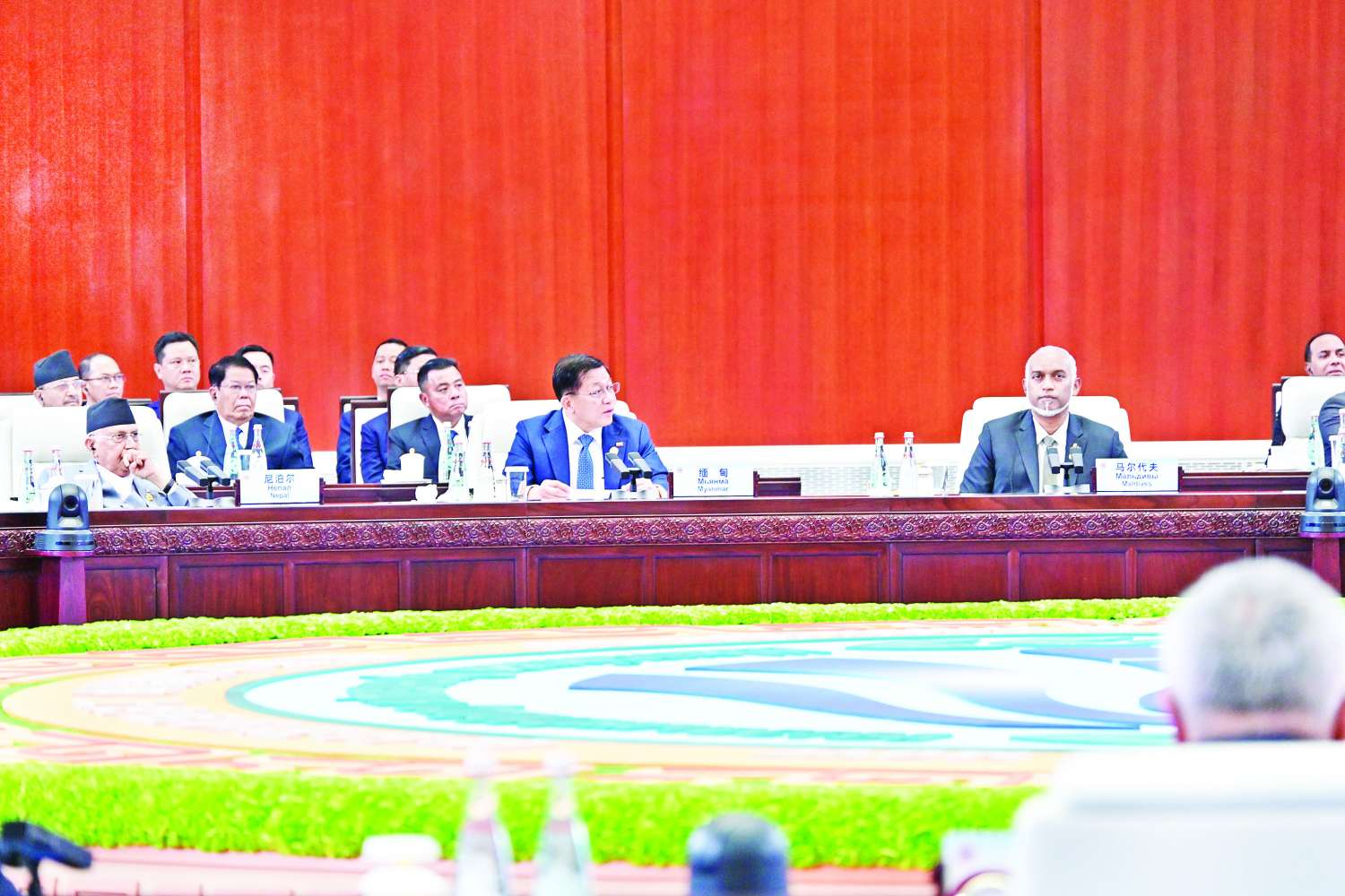 အစည်းအဝေးမစတင်မီ ပြည်ထောင်စုသမ္မတမြန်မာနိုင်ငံတော် ယာယီသမ္မတ နိုင်ငံတော်လုံခြုံရေးနှင့် အေးချမ်းသာယာရေးကော်မရှင်ဥက္ကဋ္ဌ ဗိုလ်ချုပ်မှူးကြီး မင်းအောင်လှိုင်သည်မလေးရှားနိုင်ငံဝန်ကြီးချုပ်၊ မွန်ဂိုလီးယားနိုင်ငံသမ္မတ၊ နီပေါနိုင်ငံဝန်ကြီးချုပ်၊ အာဆီယံအတွင်းရေးမှူးချုပ်၊ ရှန်ဟိုင်းပူးပေါင်းဆောင်ရွက်ရေးအဖွဲ့ချုပ် အတွင်းရေးမှူးချုပ်၊ ပါကစ္စတန်ဝန်ကြီးချုပ်နှင့် အခမ်းအနားသို့ တက်ရောက်လာကြသည့်နိုင်ငံများမှ ခေါင်းဆောင်များနှင့် သီးခြားစီတွေ့ဆုံ၍ နိုင်ငံအလိုက် နှစ်နိုင်ငံအကြားချစ်ကြည်ရေးနှင့် ပူးပေါင်းဆောင်ရွက်မှုမြှင့်တင်ရေးဆိုင်ရာ ကိစ္စရပ်များကို ရင်းရင်းနှီးနှီးဆွေးနွေးခဲ့ကြောင်း သတင်းရရှိသည်။