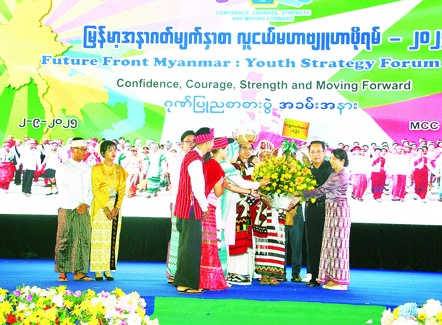 မြန်မာ့အနာဂတ်မျက်နှာစာလူငယ်မဟာဗျူဟာဖိုရမ်-၂၀၂၅ (Future Front Myanmar : Youth Strategy Forum – 2025) ဂုဏ်ပြုညစာစားပွဲအခမ်းအနားကို ယနေ့ညပိုင်းက ရန်ကုန်မြို့ မင်းဓမ္မလမ်းရှိ (Myanmar Convention Centre - MCC) ခန်းမ၌ ကျင်းပသည်။