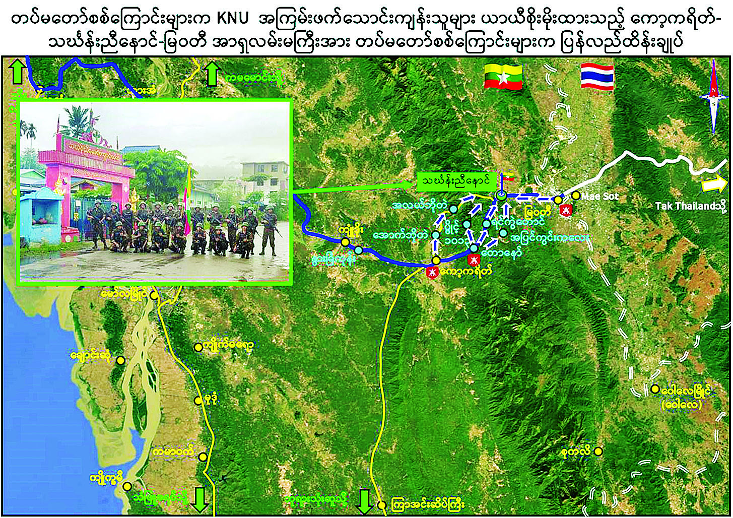 တပ်မတော်စစ်ကြောင်းများက KNU အကြမ်းဖက်သောင်းကျန်းသူများ ယာယီစိုးမိုးထားသည့် ကော့ကရိတ် - သင်္ဃန်းညီနောင် - မြဝတီအာရှလမ်းမကြီးအား ပြန်လည်ထိန်းချုပ်