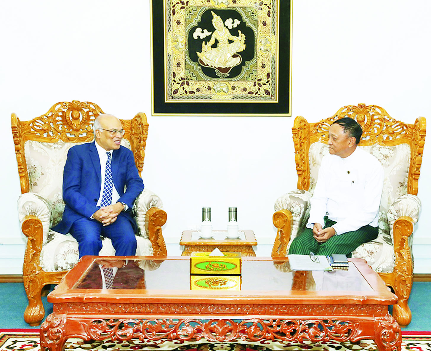 တွေ့ဆုံစဉ် မြန်မာ - ဘင်္ဂလားဒေ့ရှ် နှစ်နိုင်ငံဆက်ဆံရေးကိစ္စရပ်များနှင့် နိုင်ငံတကာမျက်နှာစာ၌ နှစ်နိုင်ငံပူးပေါင်းဆောင်ရွက်မှုကိစ္စရပ်များအပေါ် အမြင်ချင်းဖလှယ် ဆွေးနွေးကြသည်။