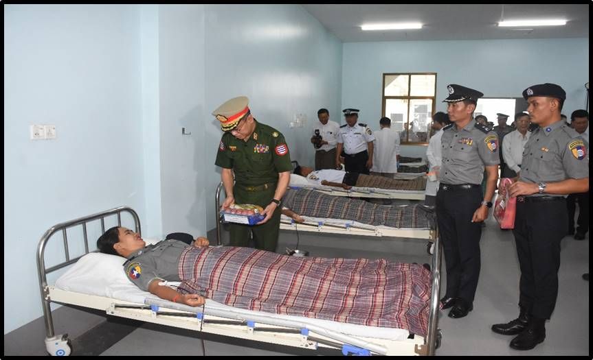 (၆၁)နှစ်မြောက် မြန်မာနိုင်ငံရဲတပ်ဖွဲ့နေ့ကို ကြိုဆိုဂုဏ်ပြုသောအားဖြင့် စုပေါင်းသွေးလှူဒါန်းပွဲကို ယနေ့နံနက်ပိုင်းတွင် ဧရာဝတီတိုင်းဒေသကြီး၊ ပုသိမ်မြို့ရှိပြည်သူ့ဆေးရုံ၌ ပြုလုပ်ရာ တိုင်းဒေသကြီးဝန်ကြီးချုပ် ဦးတင်မောင်ဝင်း၊ အနောက်တောင် တိုင်းစစ်ဌာနချုပ်တိုင်းမှူး ဗိုလ်မှူးချုပ်စိုးကျော်ထက်နှင့် မြန်မာနိုင်ငံရဲတပ်ဖွဲ့ဝင်များ တက်ရောက်ကြသည်။