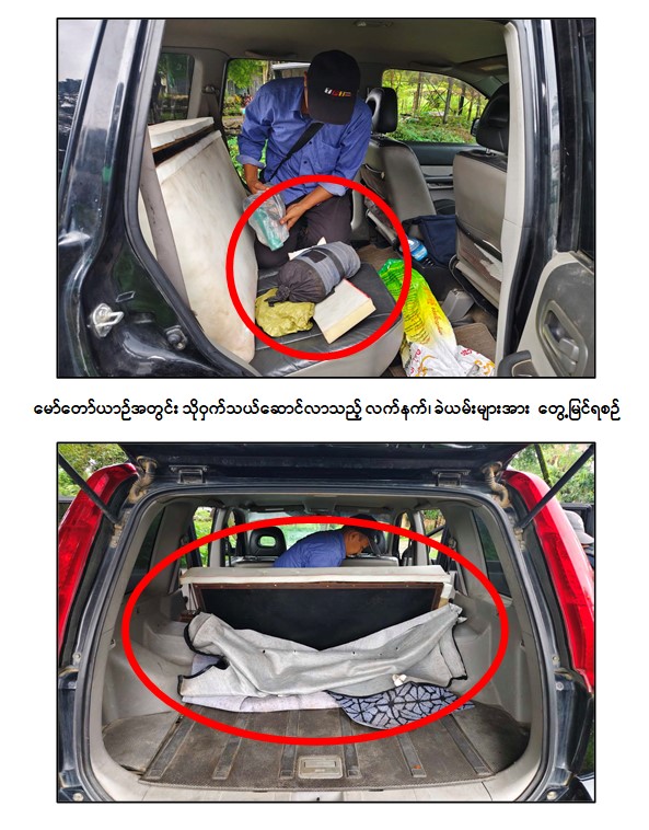 နယ်မြေတည်ငြိမ်အေးချမ်းမှုကို ပျက်ပြားစေသောလုပ်ရပ်နှင့် အကြမ်းဖက်လုပ်ဆောင်မှုကို ဆန့်ကျင်လိုကြသည့် ဒေသခံအချို့၏ လျှို့ဝှက်ဆက်သွယ်သတင်းပေးပို့မှုနှင့် အခြားဆက်စပ်သတင်းဖော်ထုတ်မှုများအရ PDF အမည်ခံအကြမ်းဖက်သမားဖြစ်သူ သန်းလွင်ဆိုသူသည် ရဟန်းသံဃာအယောင်ဆောင်၍ လက်နက်ခဲယမ်းများအား ဖြူးမြို့နယ်၊ ကျောက်တိုင်ကျေးရွာမှ သယ်ဆောင်ကာ ဇယားကျေးရွာအား ဖြတ်သန်း၍ ၎င်းမှတစ်ဆင့် အုတ်တွင်းမြို့နယ်၊ ကျွဲပွဲမြို့အနီး (သို့မဟုတ်) ရန်ကုန်-မန္တလေးအမြန်လမ်း မိုင်တိုင်အမှတ် ၁၂၈/၂ သို့ပို့ဆောင်မည်ဖြစ်ကြောင်း သိရှိရသဖြင့် ယနေ့နံနက်ပိုင်းတွင် လုံခြုံရေးတပ်ဖွဲ့ဝင်များက ဖြူးမြို့နယ်၊ ညောင်ပင်သာကျေးရွာအနီး စောင့်ဆိုင်းစစ်ဆေးမှုများ ဆောင်ရွက်ခဲ့ရာ ကျောက်တိုင်ကျေးရွာဘက်မှ ညောင်ပင်သာကျေးရွာဘက်သို့ ရဟန်းသံဃာအယောင်ဆောင် PDF အမည်ခံအကြမ်းဖက်သမားသန်းလွင်မောင်းနှင်လာသည့် ယာဉ်အမှတ်၊ RLG / 1412၊ X-Trail အနက်ရောင်လိုင်စင်မဲ့ယာဉ်အား ယာဉ်၏ ကိုယ်ထည်အတွင်း သိုဝှက်သယ်ဆောင်လာသည့် လက်နက်မျိုးစုံ ၉ လက်၊ ဆက်စပ်ပစ္စည်းများနှင့်အတူ ဖမ်းဆီးရမိခဲ့သည်။
