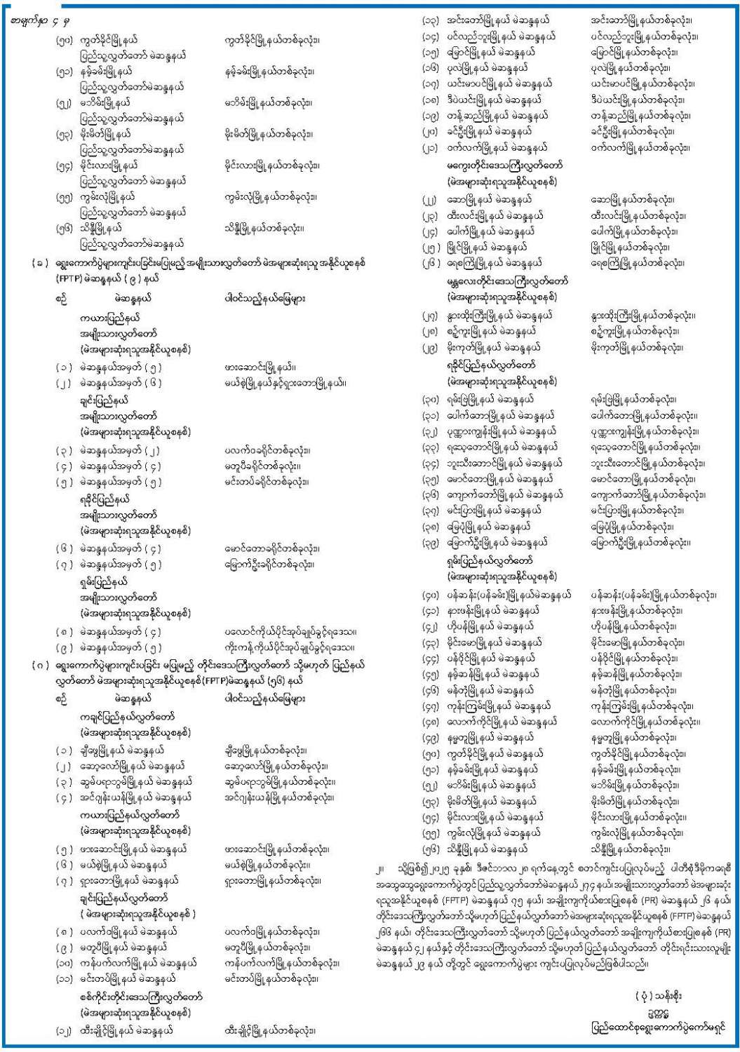 ရွေးကောက်ပွဲများကျင်းပခြင်းမပြုမည့် ပြည်သူ့လွှတ်တော်မဲဆန္ဒနယ်၊ အမျိုးသားလွှတ်တော် မဲအများဆုံးရသူအနိုင်ယူစနစ် (FPTP) မဲဆန္ဒနယ်နှင့် တိုင်းဒေသကြီးလွှတ်တော် သို့မဟုတ် ပြည်နယ်လွှတ်တော် မဲအများဆုံးရသူအနိုင်ယူစနစ် (FPTP) မဲဆန္ဒနယ်များစာရင်း ထုတ်ပြန်ကြေညာ