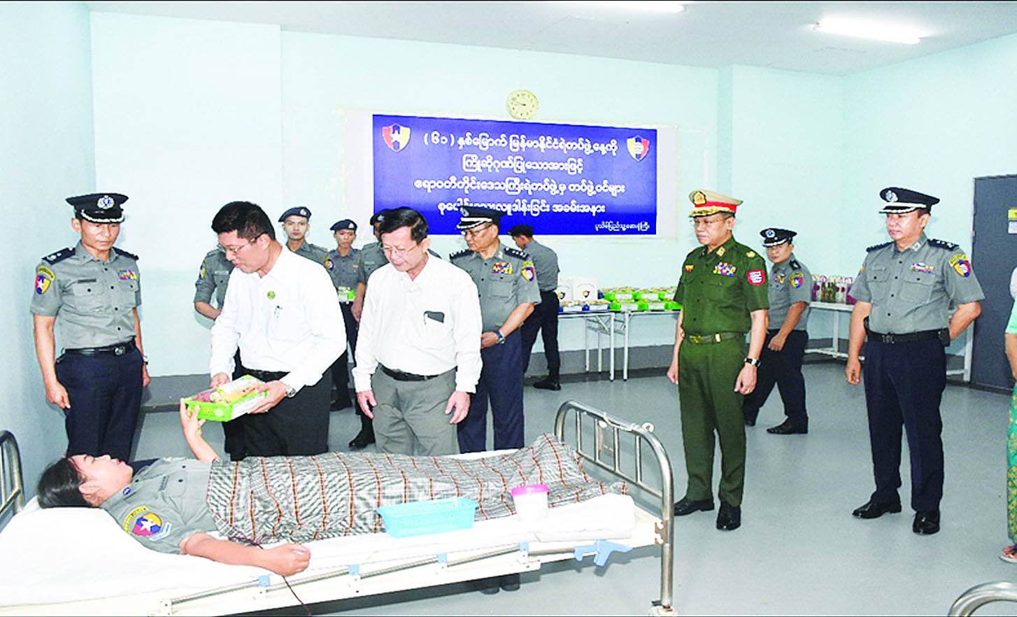 (၆၁) နှစ်မြောက် မြန်မာနိုင်ငံရဲတပ်ဖွဲ့နေ့ကို ကြိုဆိုဂုဏ်ပြုသောအားဖြင့် ပုသိမ်မြို့ရှိ ပြည်သူ့ဆေးရုံကြီး၌ စုပေါင်းသွေးလှူဒါန်း