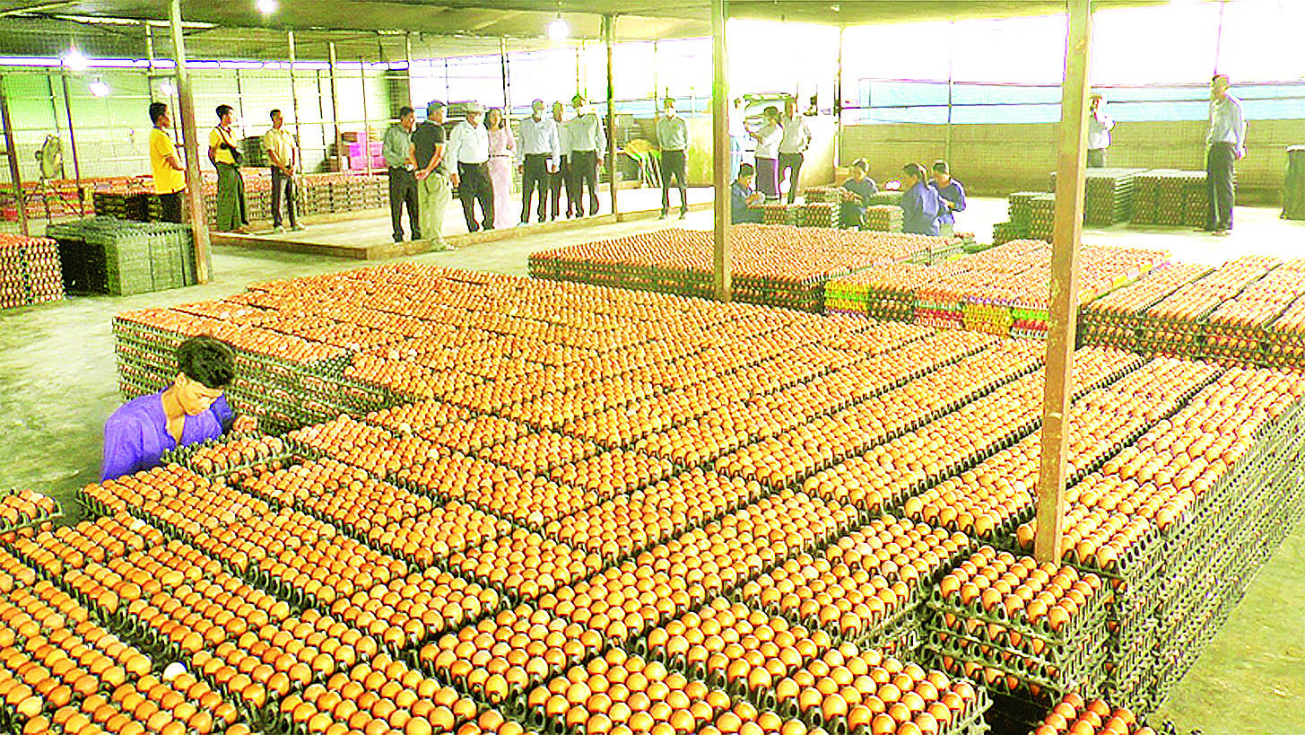 ထို့နောက် မှော်ဘီမြို့ ချော်ကုန်းကျေးရွာရှိ Crystal Diamon Livestock Co.,Ltd. ၏ Commercial Layer Fram သို့ရောက်ရှိပြီး မွေးမြူရေးခြံအတွင်း ကြက်ငယ် ၄၁၄၀၁ ကောင်၊ ဥကြက်မ ၂၃၈၀၉၂ ကောင် မွေးမြူထားပြီး နေ့စဉ် ကြက်ဥ ၁၈၄၁၇၀ ထုတ်လုပ်၍ ဈေးကွက်သို့ဖြန့်ဖြူးပေးနေမှု၊ Feed MAS Co.,Ltd. ဥစားကြက်မွေးမြူရေးခြံ၏ ဥစားကြက်ကေင်ရေ ၁၁၃၉၈၈ ကောင် မွေးမြူထားရှိမှုတို့ကို ကြည့်ရှုစစ်ဆေးသည်။