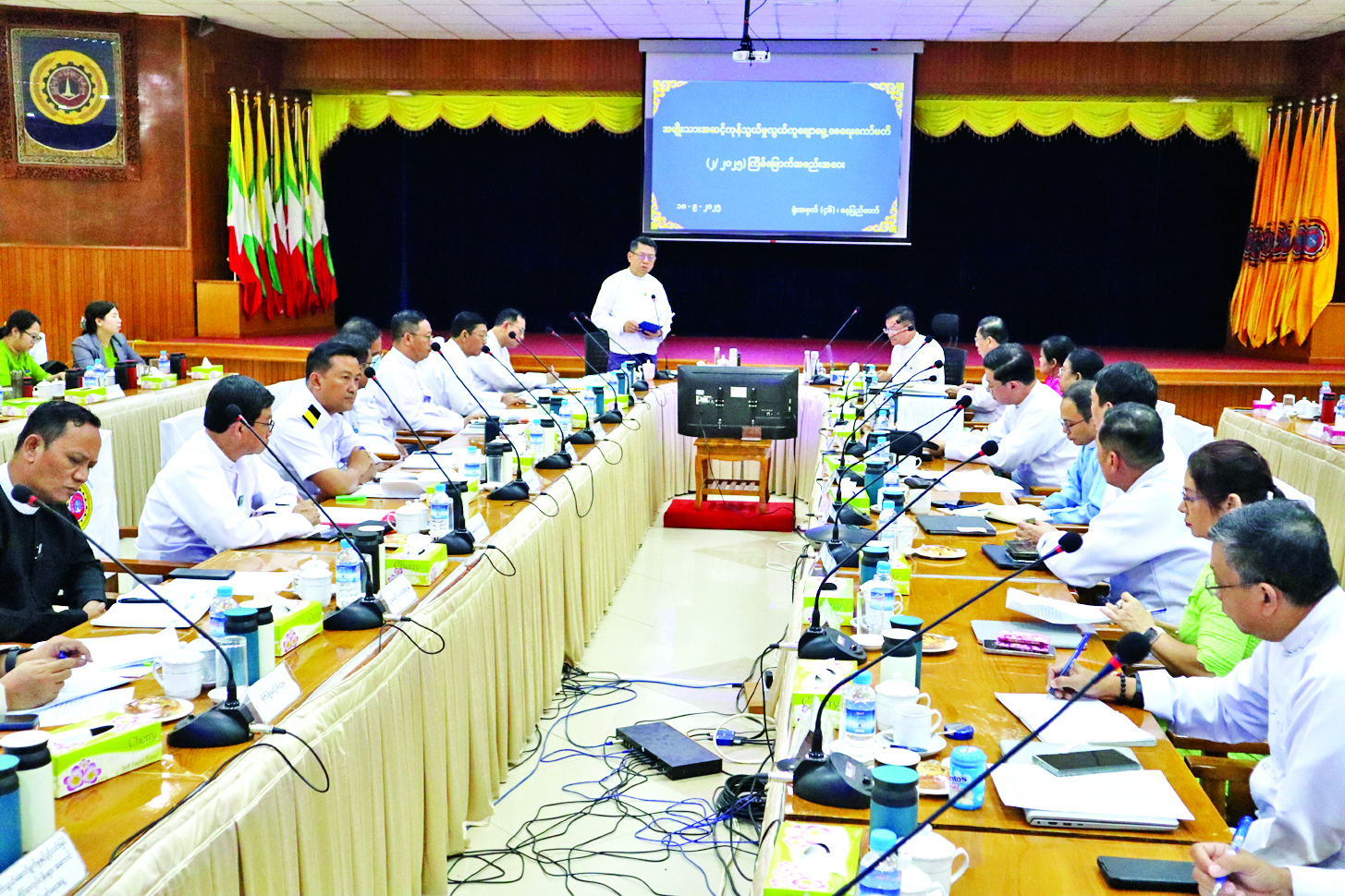 ဆက်လက်၍ ကော်မတီအောက်ရှိ လုပ်ငန်းအဖွဲ့ဥက္ကဋ္ဌများက သက်ဆိုင်ရာကဏ္ဍအလိုက် ဆောင်ရွက်ပြီးစီးမှုနှင့် ဆက်လက်ဆောင်ရွက်သွားမည့် အခြေအနေကို ဆွေးနွေးတင်ပြကြပြီး ဆွေးနွေးမှုများအပေါ် ကော်မတီဥက္ကဋ္ဌနှင့် ပူးတွဲကော်မတီဥက္ကဋ္ဌတို့က ပြန်လည်ရှင်းလင်းဆွေးနွေးကာ နိဂုံးချုပ်အမှာစကားများ ပြောကြားခဲ့ကြောင်း သိရသည်။
