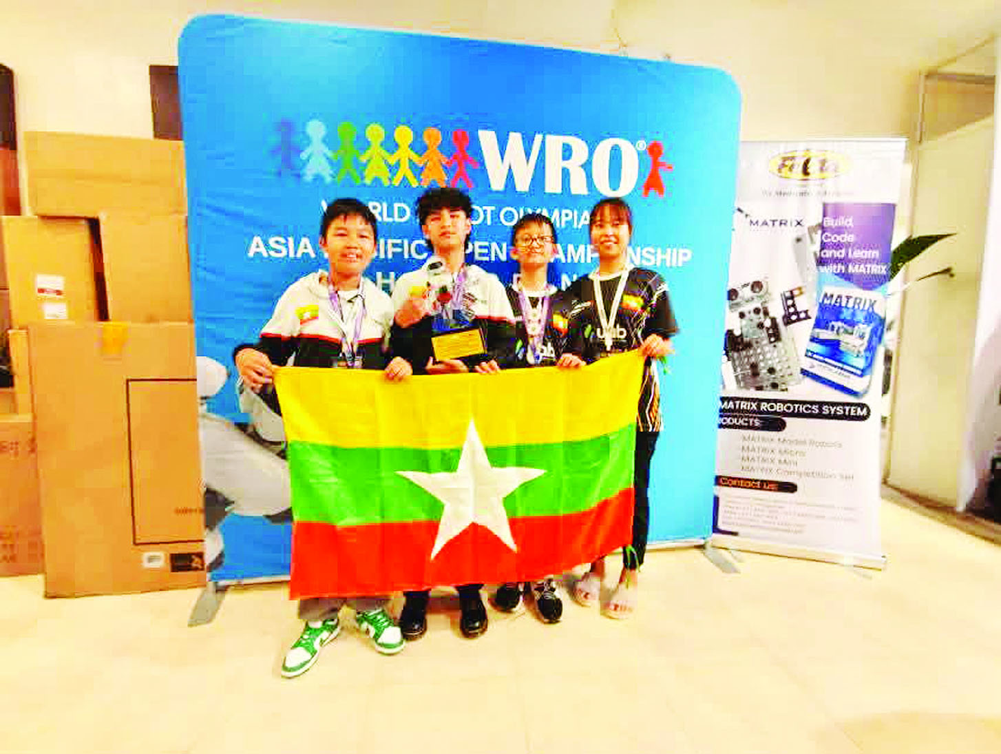 ကမ္ဘာ့စက်ရုပ်အိုလံပစ် အာရှပစိဖိတ်ပြိုင်ပွဲတွင် မြန်မာနိုင်ငံကိုယ်စားပြု We Are Genius MYANMAR အသင်း၊ ILBC ၊ CIY Club တို့ ဝင်ရောက်ယှဉ်ပြိုင်ခဲ့ကြကြောင်း သိရသည်။