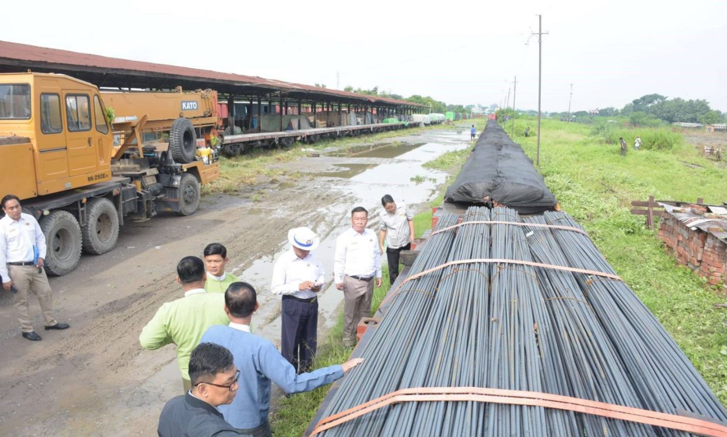 ပြန်လည်ထူထောင်ရေးနှင့် တည်ဆောက်ရေးလုပ်ငန်းများအတွက် လိုအပ်သော သံချောင်းလုံးများအား အထူးကုန်ရထားဖြင့် ပို့ဆောင်