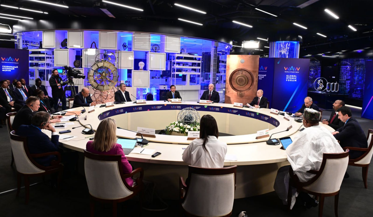 “ကမ္ဘာ့အဏုမြူသီတင်းပတ်ဖိုရမ် (World Atomic week forum)" ကို ယနေ့တွင် ရုရှားဖက်ဒရေးရှင်းနိုင်ငံ၊ မော်စကိုမြို့ရှိ Atom Museum ၌ ကျင်းပပြုလုပ်ရာ ပြည်ထောင်စုသမ္မတမြန်မာနိုင်ငံတော် ယာယီသမ္မတ နိုင်ငံတော်လုံခြုံရေးနှင့်အေးချမ်းသာယာရေးကော်မရှင်ဥက္ကဋ္ဌ ဗိုလ်ချုပ်မှူးကြီး မင်းအောင်လှိုင်သည် “နည်းပညာသစ်မွေးဖွားခြင်းမှ ကမ္ဘာသစ်အမြင်ဆီသို့ (From a New Technological Rollout to a New Worldview)” ခေါင်းစဉ်ဖြင့် ပြုလုပ်သည့် မျက်နှာစုံညီထိပ်သီးအစည်းအဝေးသို့ ပါဝင်တက်ရောက်ဆွေးနွေးသည်။