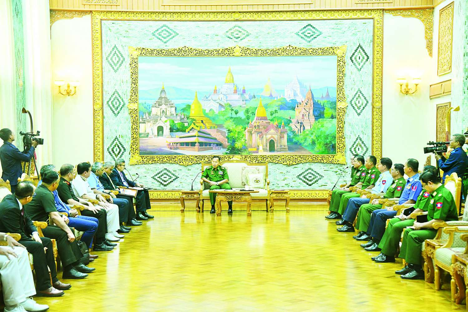 နိုင်ငံတော်လုံခြုံရေးနှင့်အေးချမ်းသာယာရေးကော်မရှင် ဒုတိယဥက္ကဋ္ဌ ဒုတိယတပ်မတော်ကာကွယ်ရေးဦးစီးချုပ် ကာကွယ်ရေးဦးစီးချုပ် (ကြည်း) ဒုတိယဗိုလ်ချုပ်မှူးကြီး စိုးဝင်း အိန္ဒိယနိုင်ငံ ကာကွယ်ရေးဝန်ကြီးဌာန ကာကွယ်ရေးအတွင်းဝန် Mr. Rajesh Kumar Singh ဦးဆောင်သော ကိုယ်စားလှယ်အဖွဲ့အား လက်ခံတွေ့ဆုံ