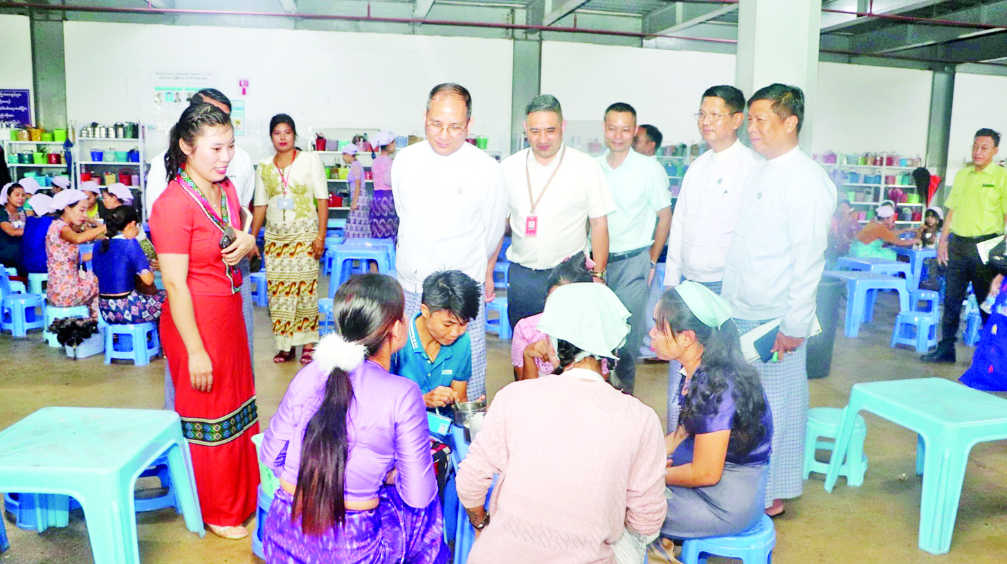ပြည်ထောင်စုဝန်ကြီး ဦးအောင်ကျော်ဟိုး မြစိမ်းရောင်စက်မှုဇုန်ရှိ စက်ရုံများ ကွင်းဆင်းအားပေး